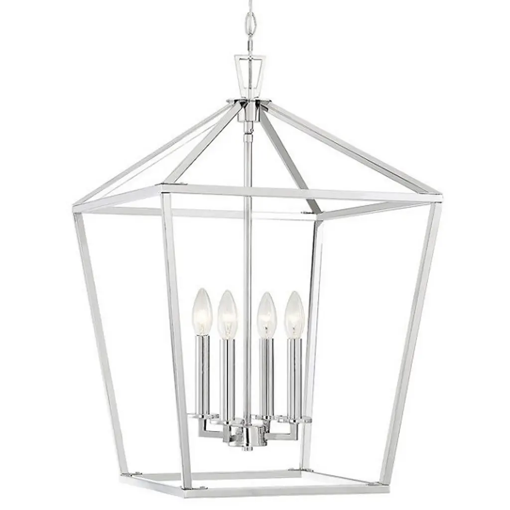 Perfect light source for the home. The Townsend Chandelier by Savoy House is a transitional piece that works well with a variety of décor schemes. Shaped like a lantern with an airy design hosting candelabra sockets in the center, this ceiling fixture directs light from every angle. For decorating convenience, it's available in multiple size options to ensure the perfect fit to suit your space.