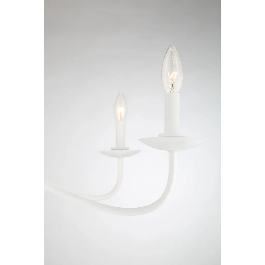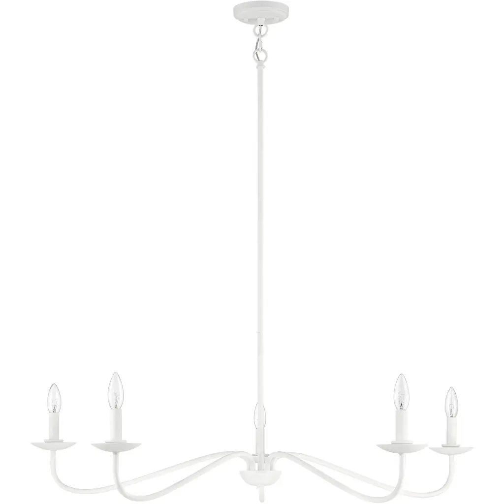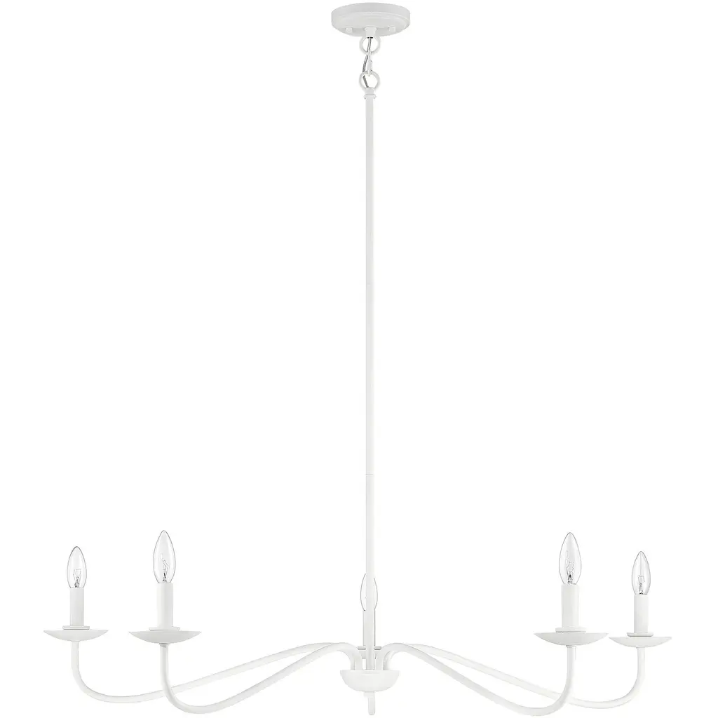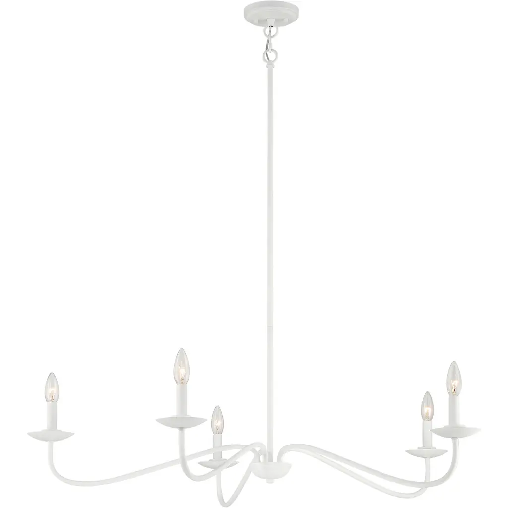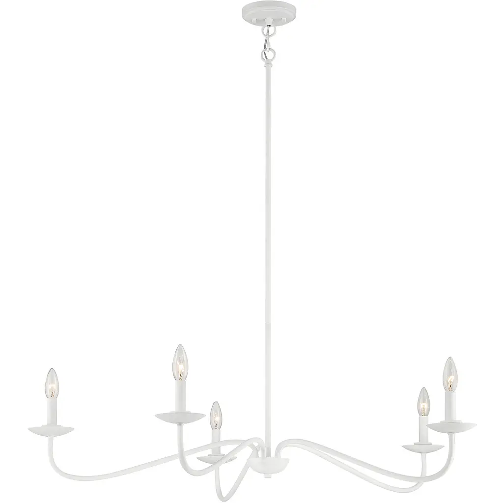 This 5-light chandelier makes a big statement with its long, dramatically curving arms and bisque white finish. Use it to add a fresh new look to rooms with traditional, contemporary and even farmhouse decor styles 7" height, 42" width. Uses candelabra size bulbs, max 60 watts per bulb. LED bulb compatible.