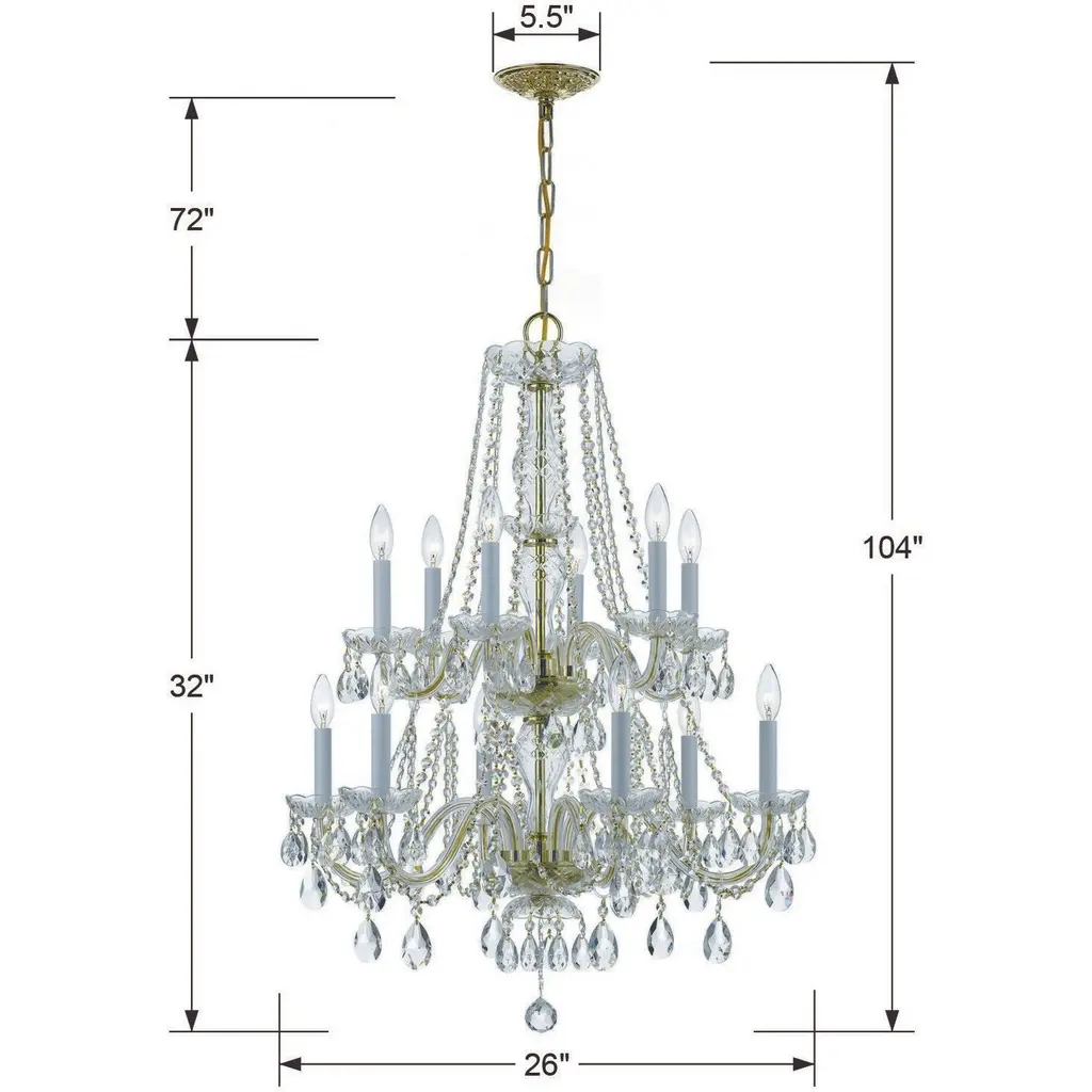 Traditional Crystal 12 Light 26 Inch Polished Brass Chandelier Ceiling Light In Clear Spectra