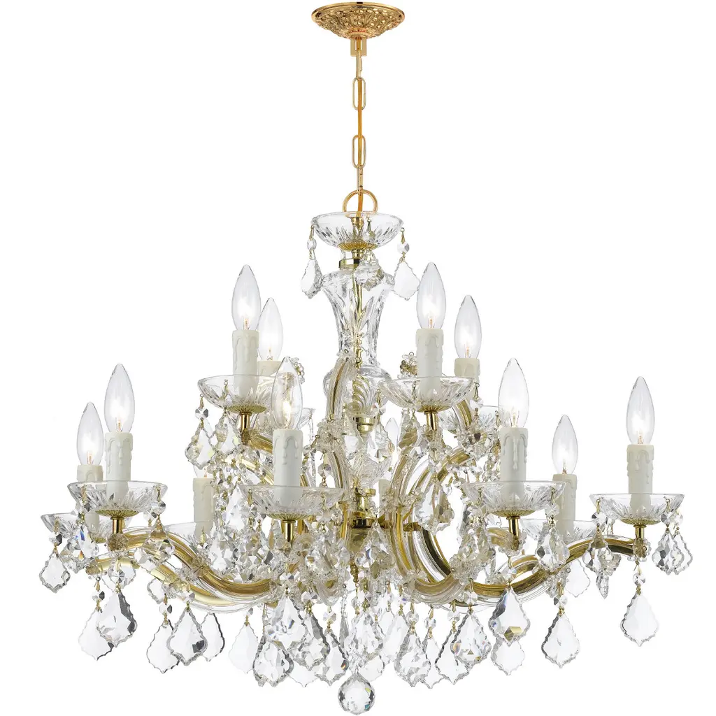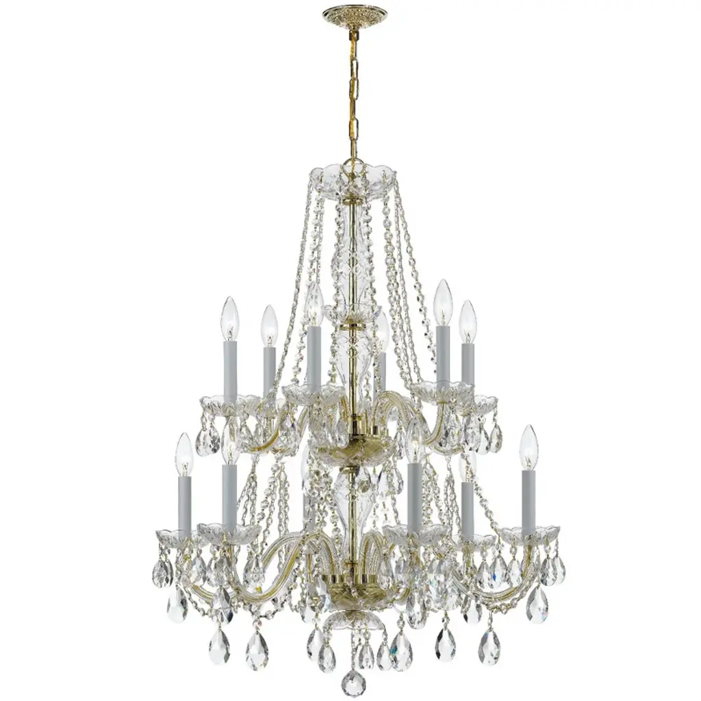 Traditional Crystal 12 Light Spectra Crystal Polished Brass Chandelier