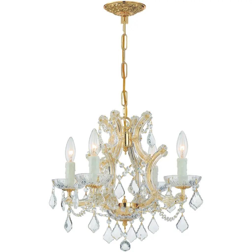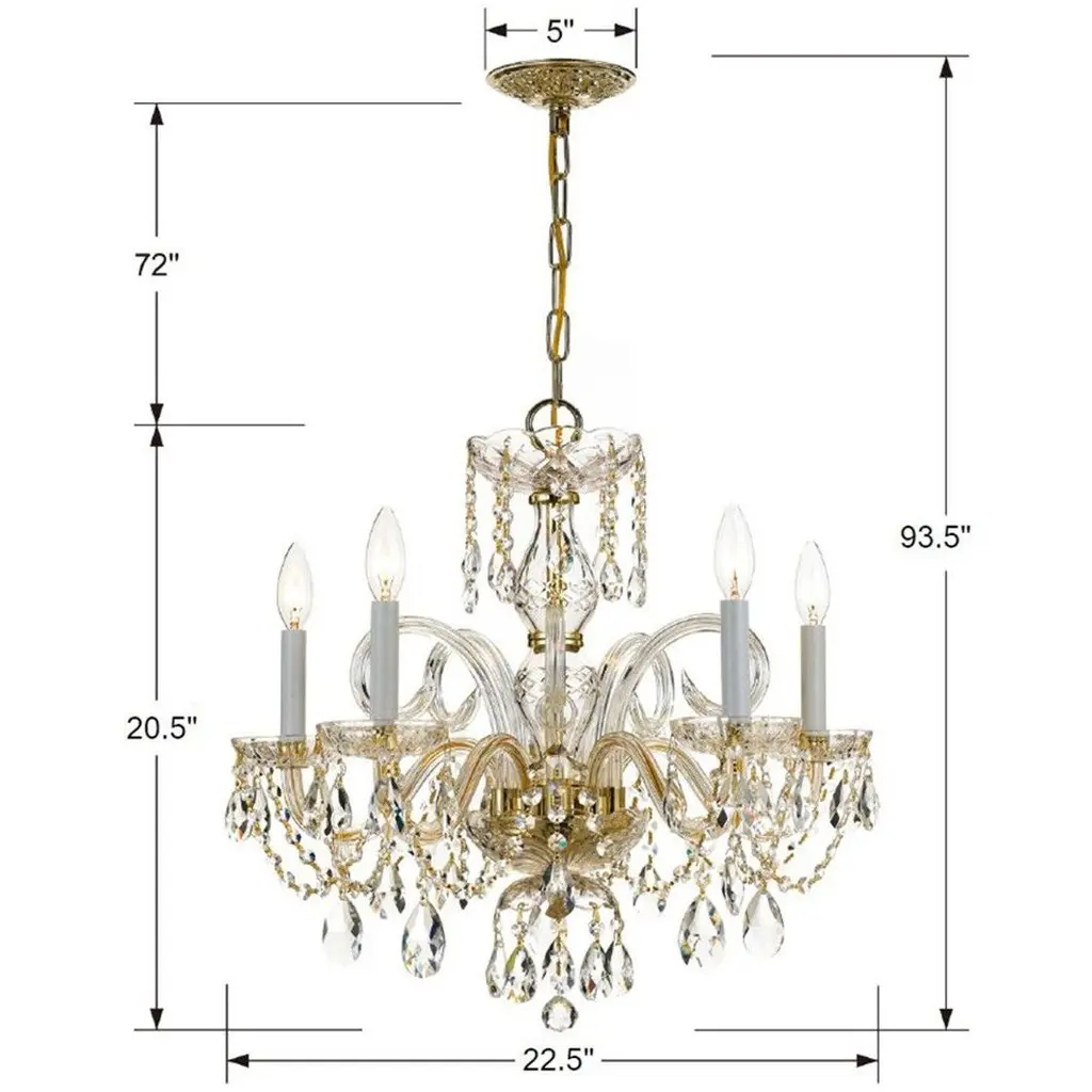 Traditional Crystal 5 Light Hand Cut Crystal Polished Brass Chandelier
