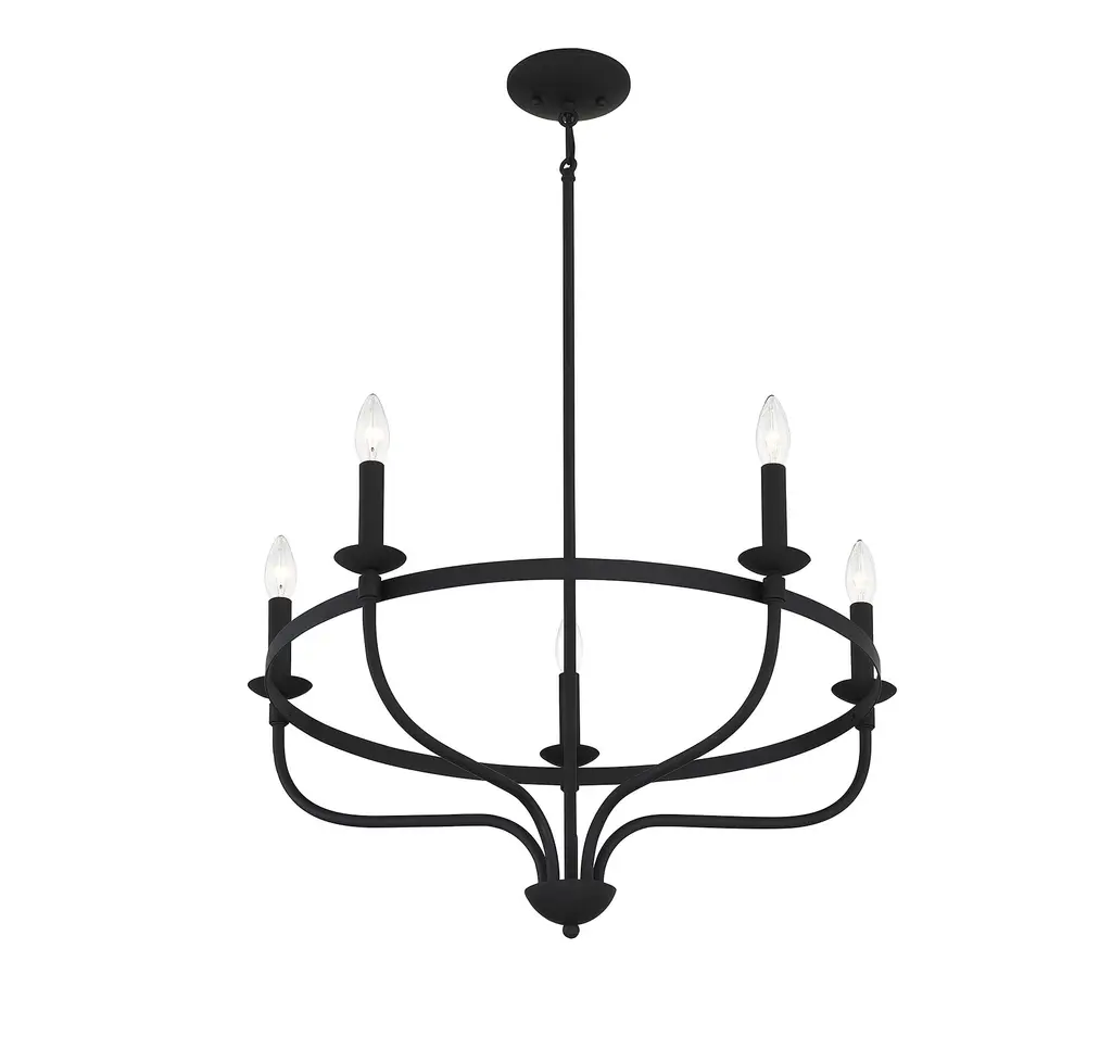 Transitional 5 Light 26.63 Inch Matte Black Chandelier Ceiling Light