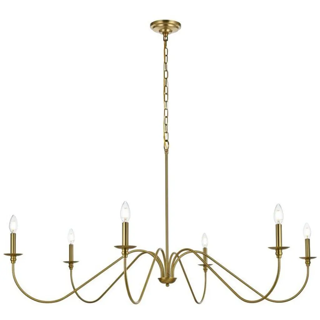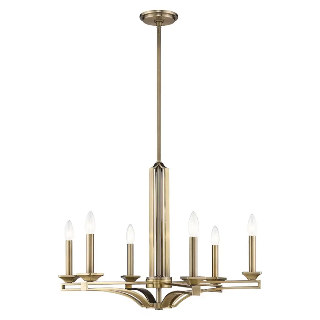 Transitional 6 Light 28 Inch Natural Brass Chandelier Ceiling Light