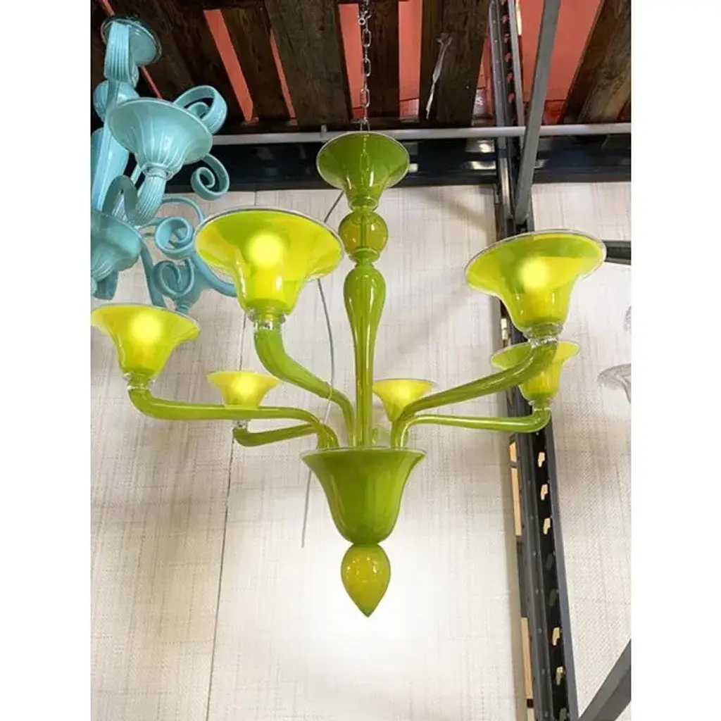 Translucent Apple-Green Murano Style Glass Chandelier By Simoeng