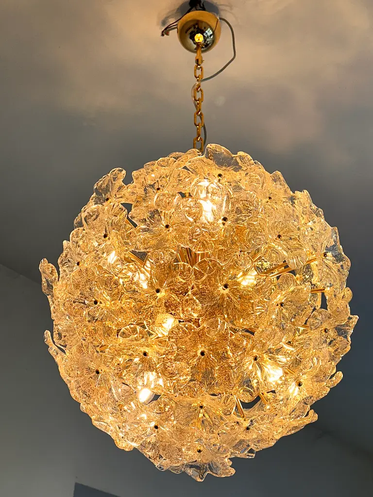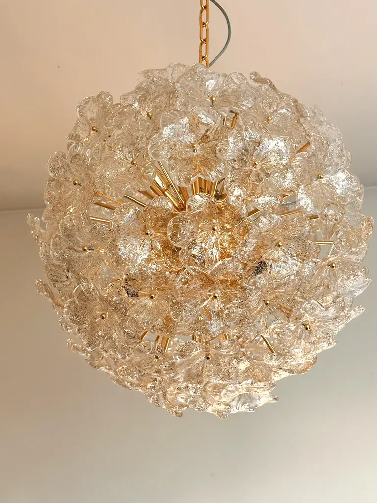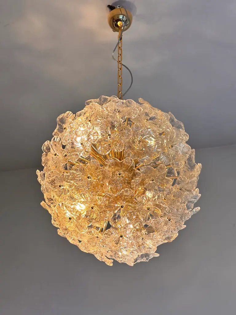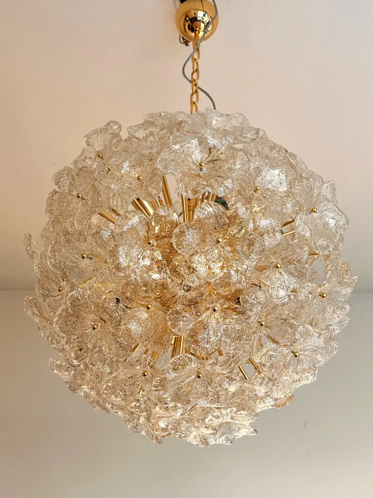Transparent And Gold Lotus Murano Style Glass Sputnik Chandelier