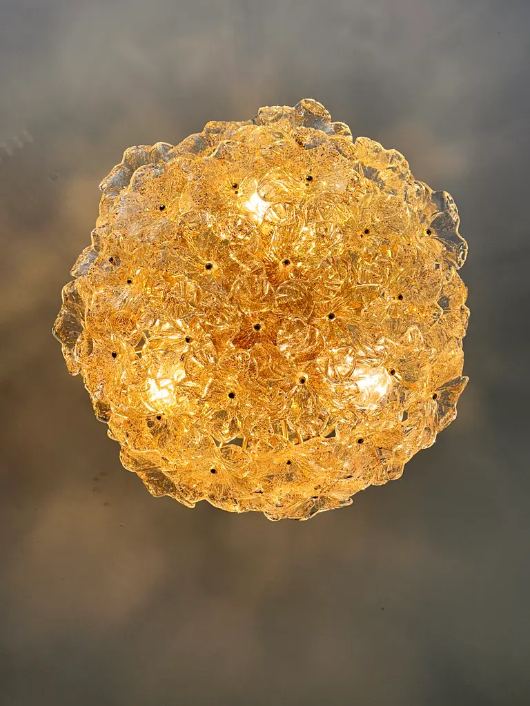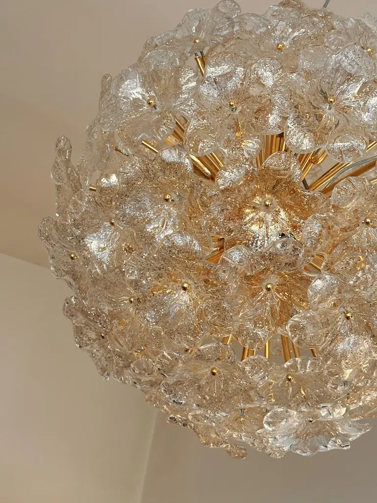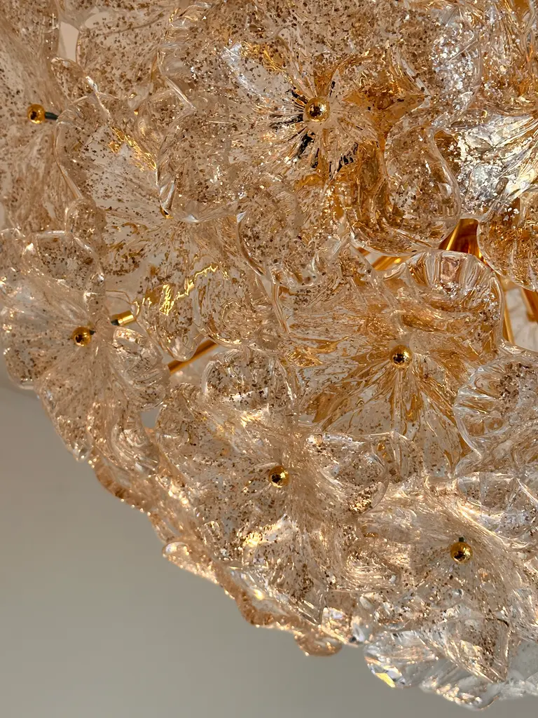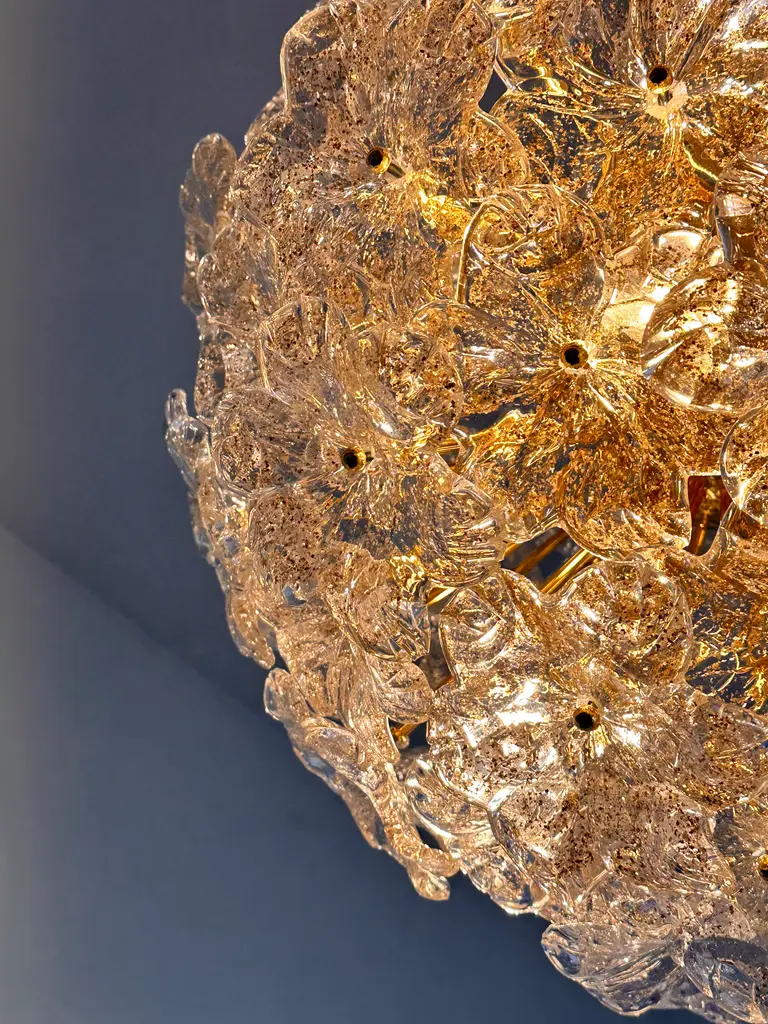 Transparent And Gold Lotus Murano Style Glass Sputnik Chandelier