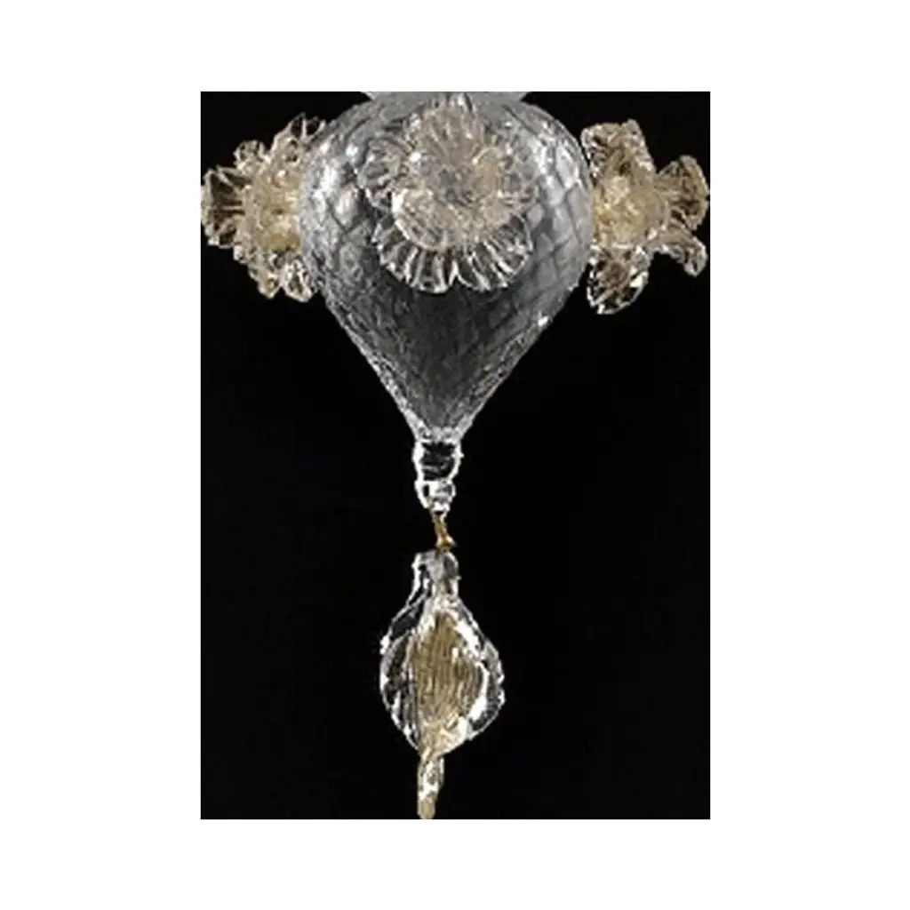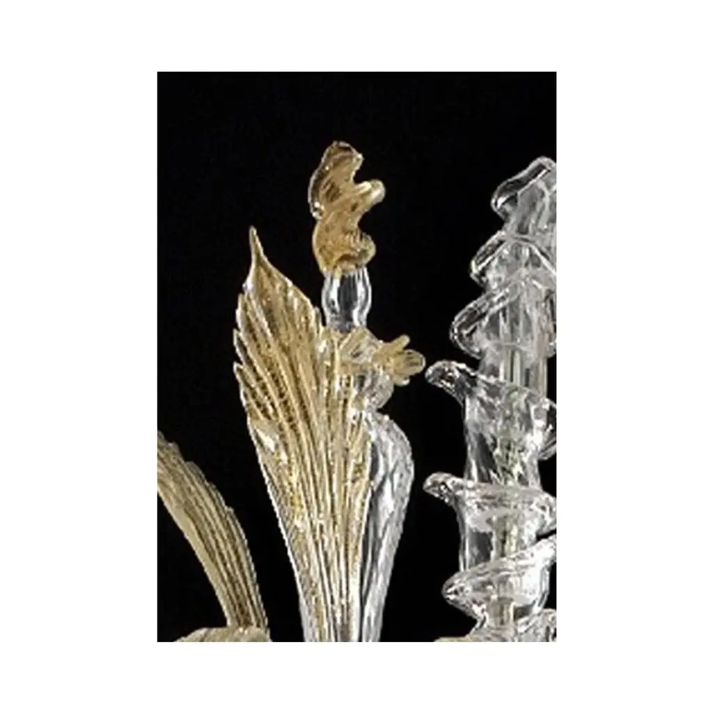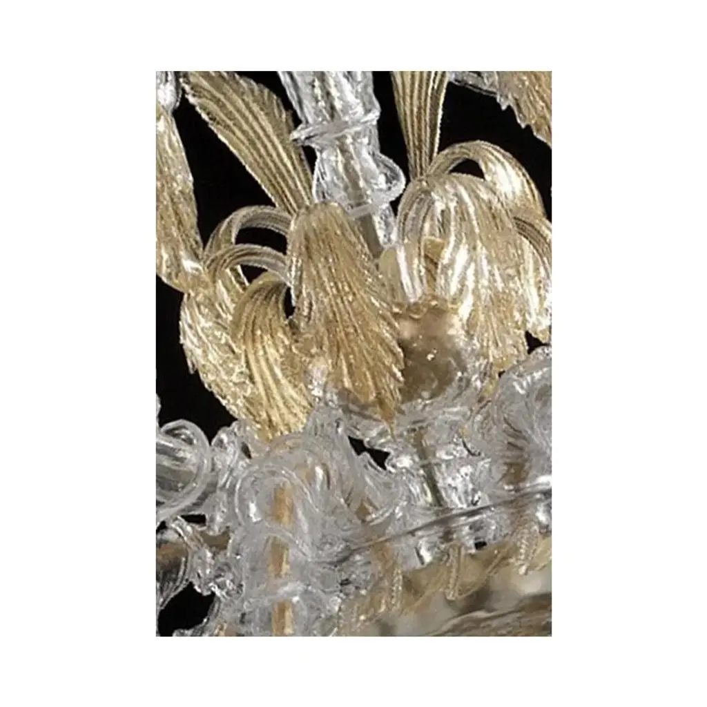 Venetian "ca' rezzonico" transparent and gold murano glass chandelier with flowers and leaves classical transparent murano glass chandelier with flowers and leaves, full of gold-leaf inside. traditional piece of italian art of blowing glass. Very elegant for classical and modern interiors. Design ad production made in italy. made in murano glass, very hand-made working glass, fruit of high italian craftsmanship. 6 bulbs, not included, compatible with led sustainability. chain 50 cm = 19.7″ more canopy lot of 2 or a pair of chandeliers ship from italy not assembled diameter 100cm height 120cm/ d.40” h.48” us plug (up to 110v).