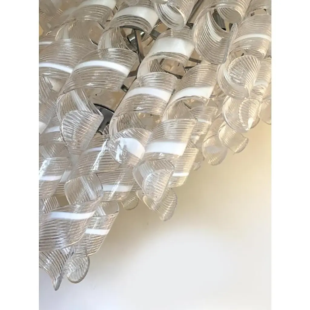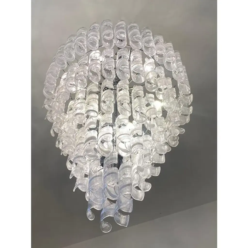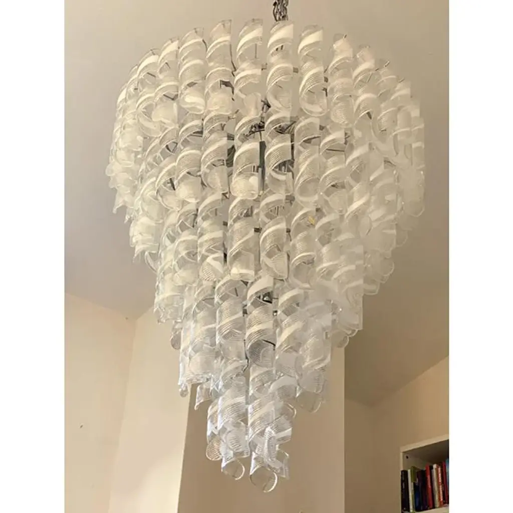 Huge transparent and white “ricci” murano glass chandelier transparent and white vintage “curls” chandelier, hight italian craftmanship. “riccio” is a glass element of hight italian handcraftsman made in murano. diameter 90cm h 100cm/d. 35.4" h39.3" finiture: kromed brass metal frame chain 19.7″ more canopy all made in italy, ship from italy creator simoeng us plug (up to 110v).