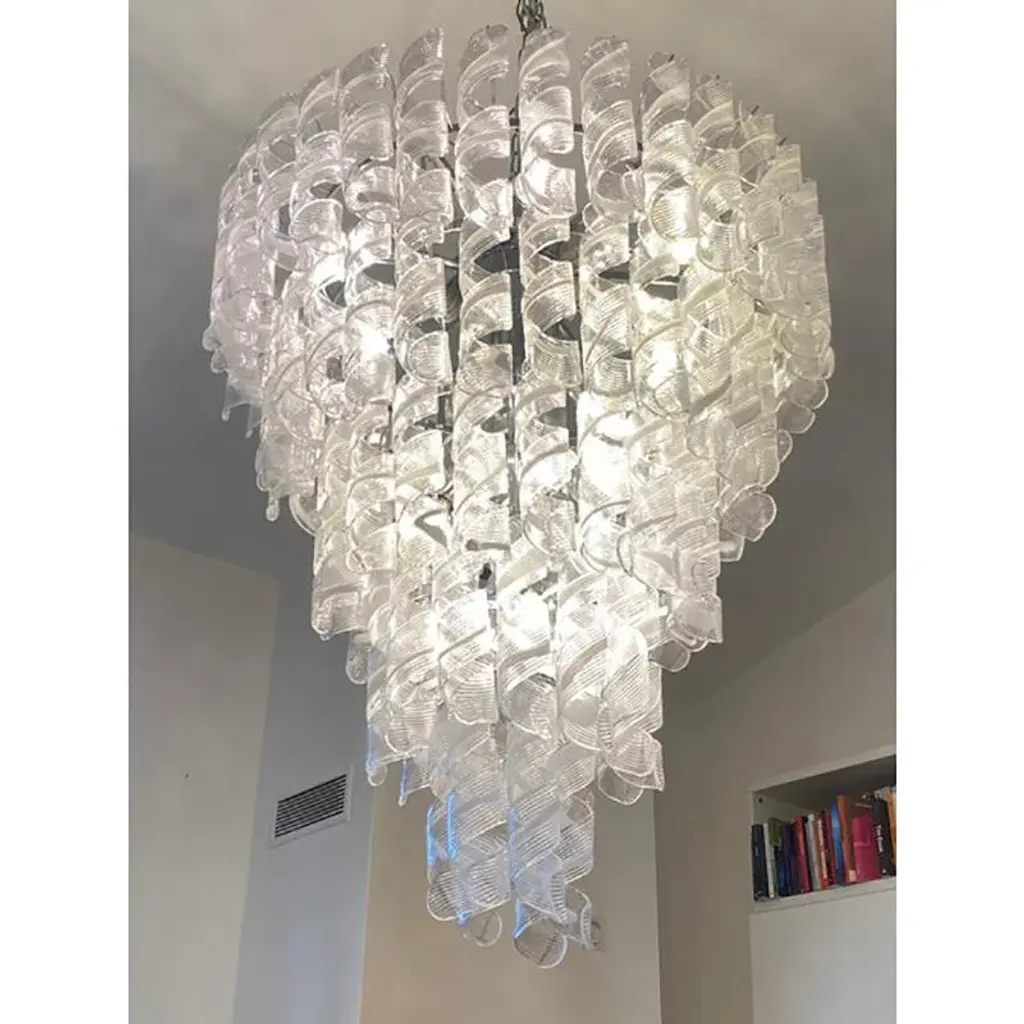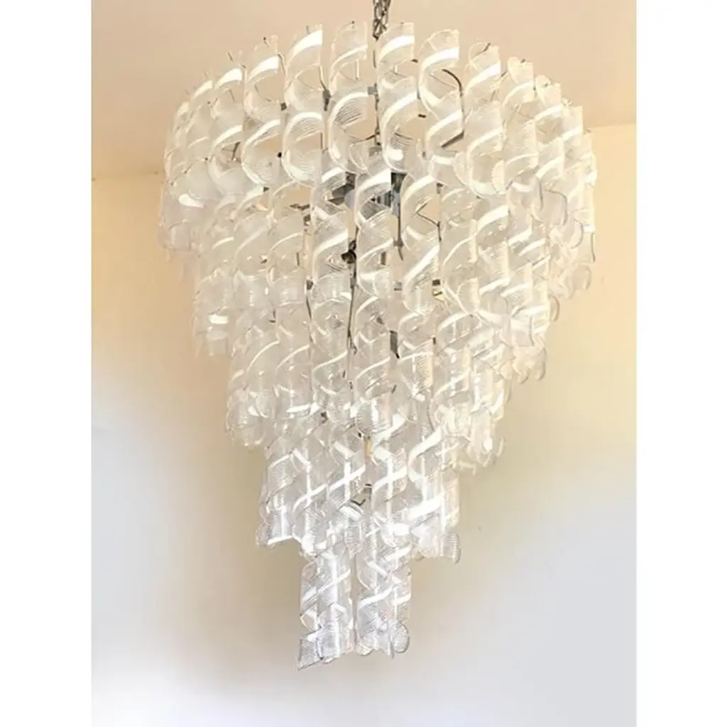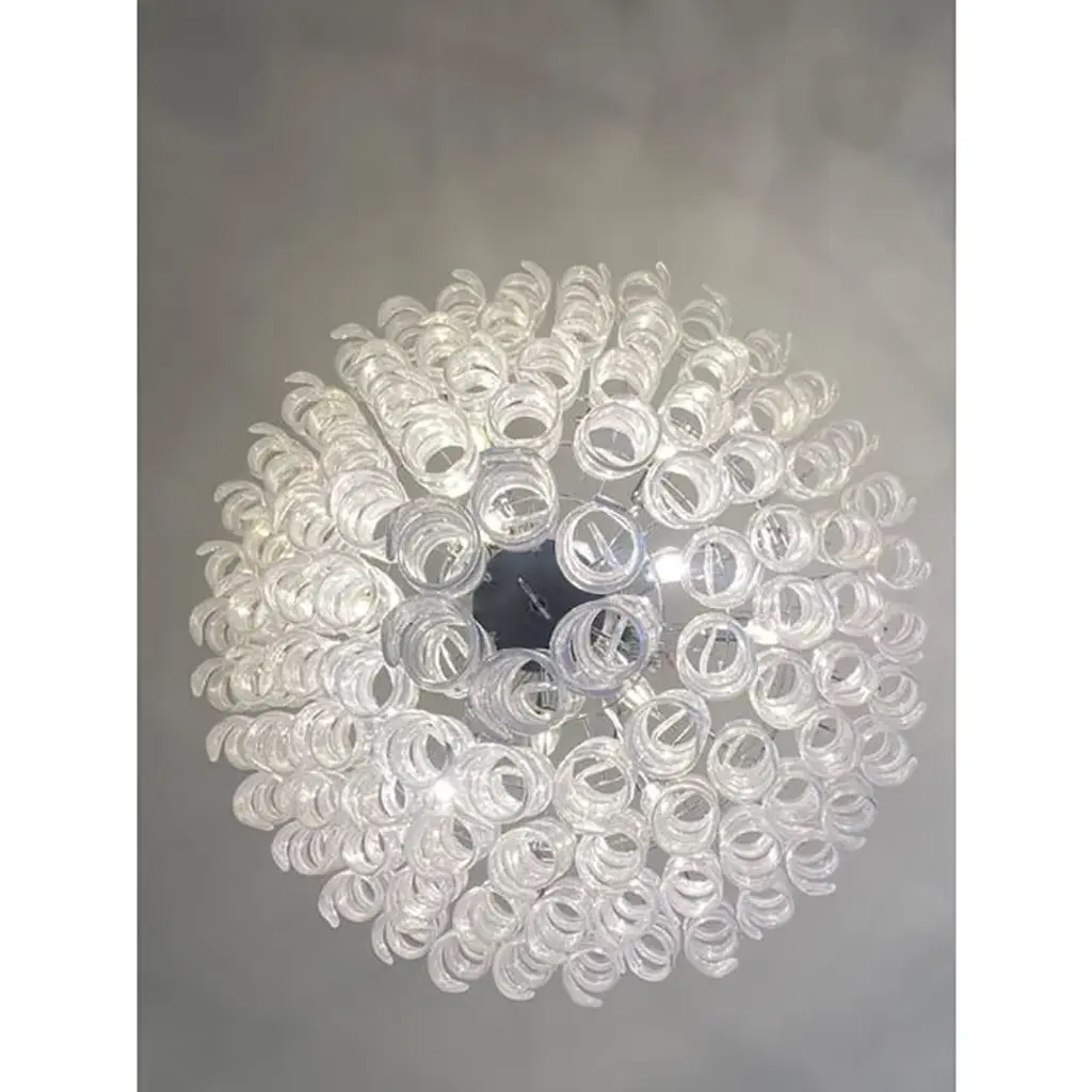 Huge transparent and white “ricci” murano glass chandelier transparent and white vintage “curls” chandelier, hight italian craftmanship. “riccio” is a glass element of hight italian handcraftsman made in murano. diameter 90cm h 100cm/d. 35.4" h39.3" finiture: kromed brass metal frame chain 19.7″ more canopy all made in italy, ship from italy creator simoeng us plug (up to 110v).