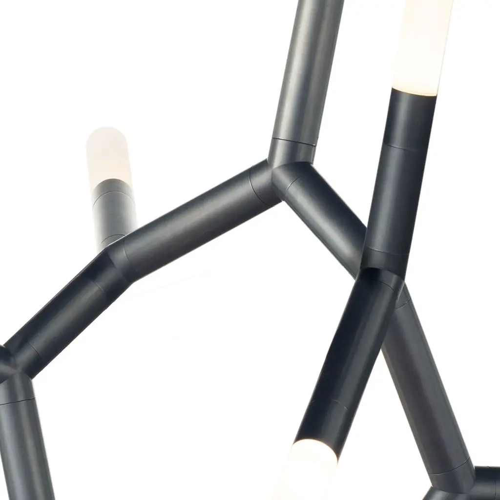 This sculptural chandelier was engineered to hang at a slight angle—just one reason it's certain to command attention. There's also its lustrous finish and unexpected asymmetry. The seven frosted acrylic bulb covers ensure soft, flattering illumination.
