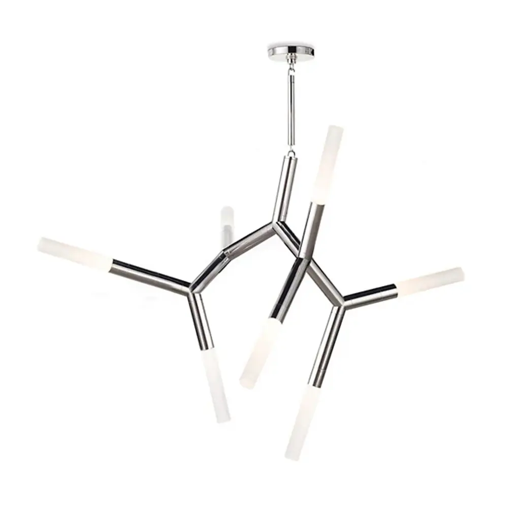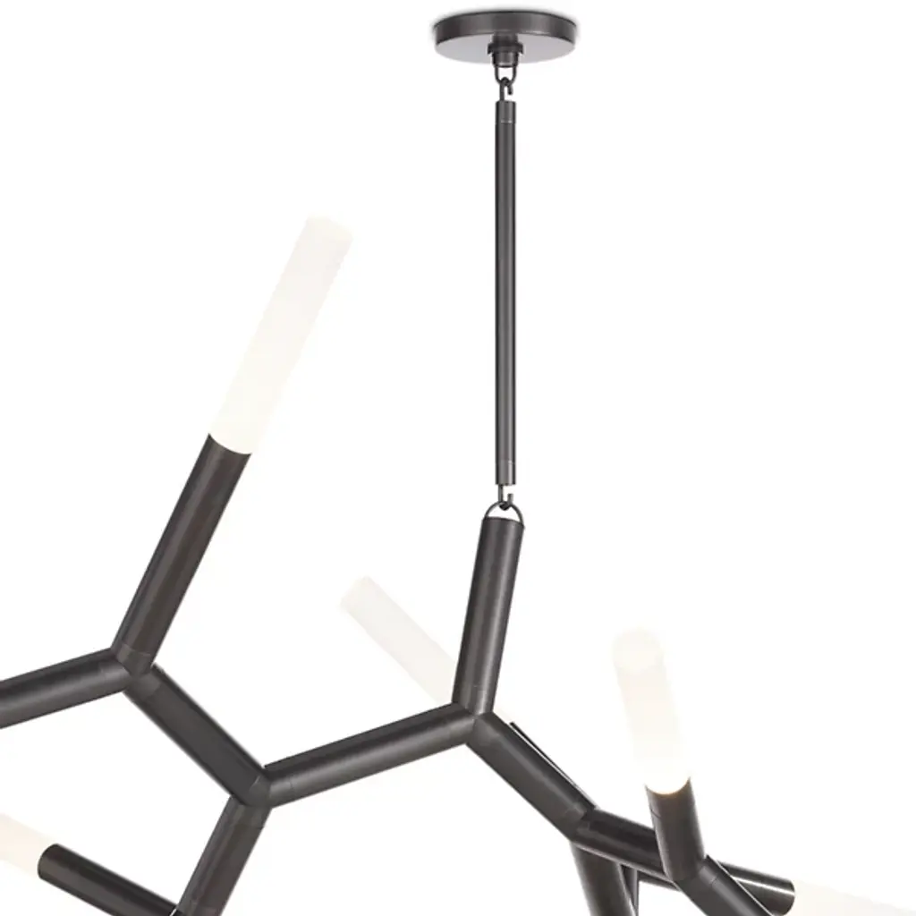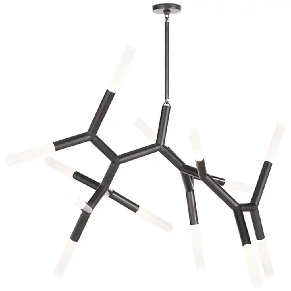 A journey for the eyes is in store with the branching light paths of the Traveler LED Chandelier from Regina Andrew. This modern piece evokes the airy, dynamic personality of hanging mobile sculptures. This chandelier is designed to hang at a slight angle for added drama. The tubular metal structure sends the eyes moving with a bevy of angle shifts. The structure’s time-tested finish looks stunning against the crisp acrylic rods topping the internal lamping. These acrylic rods draw impressive linear highlights overhead. The light mellows through the acrylic for a clean, approachable glow.