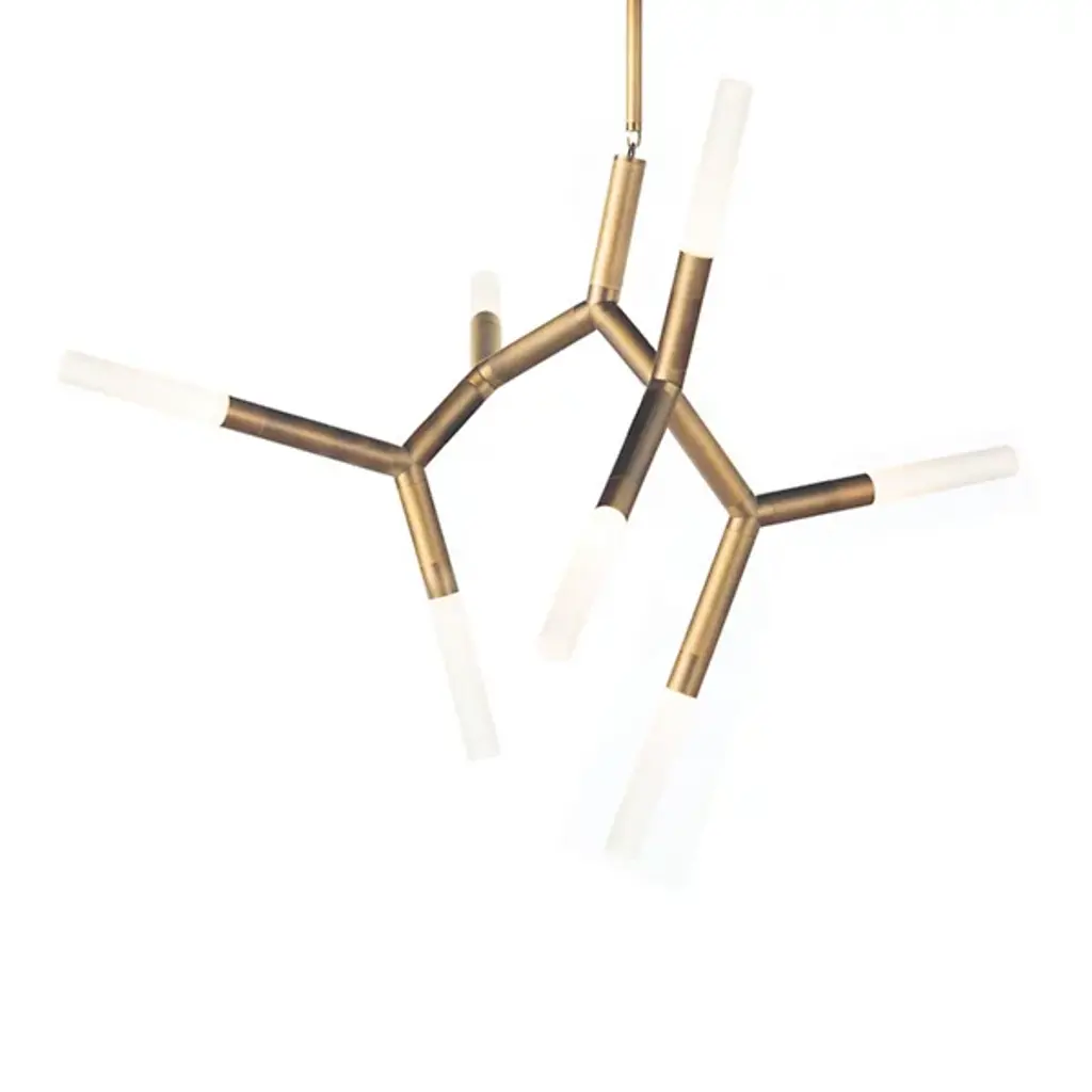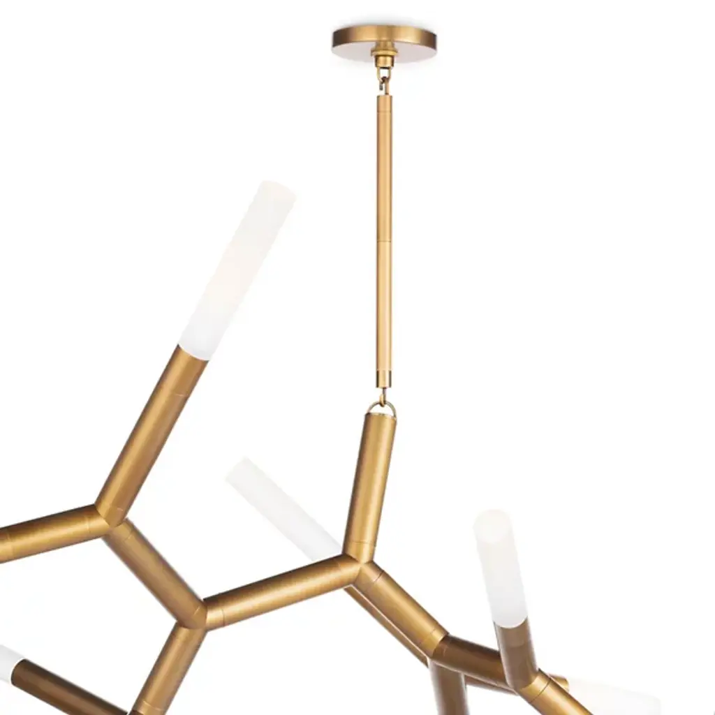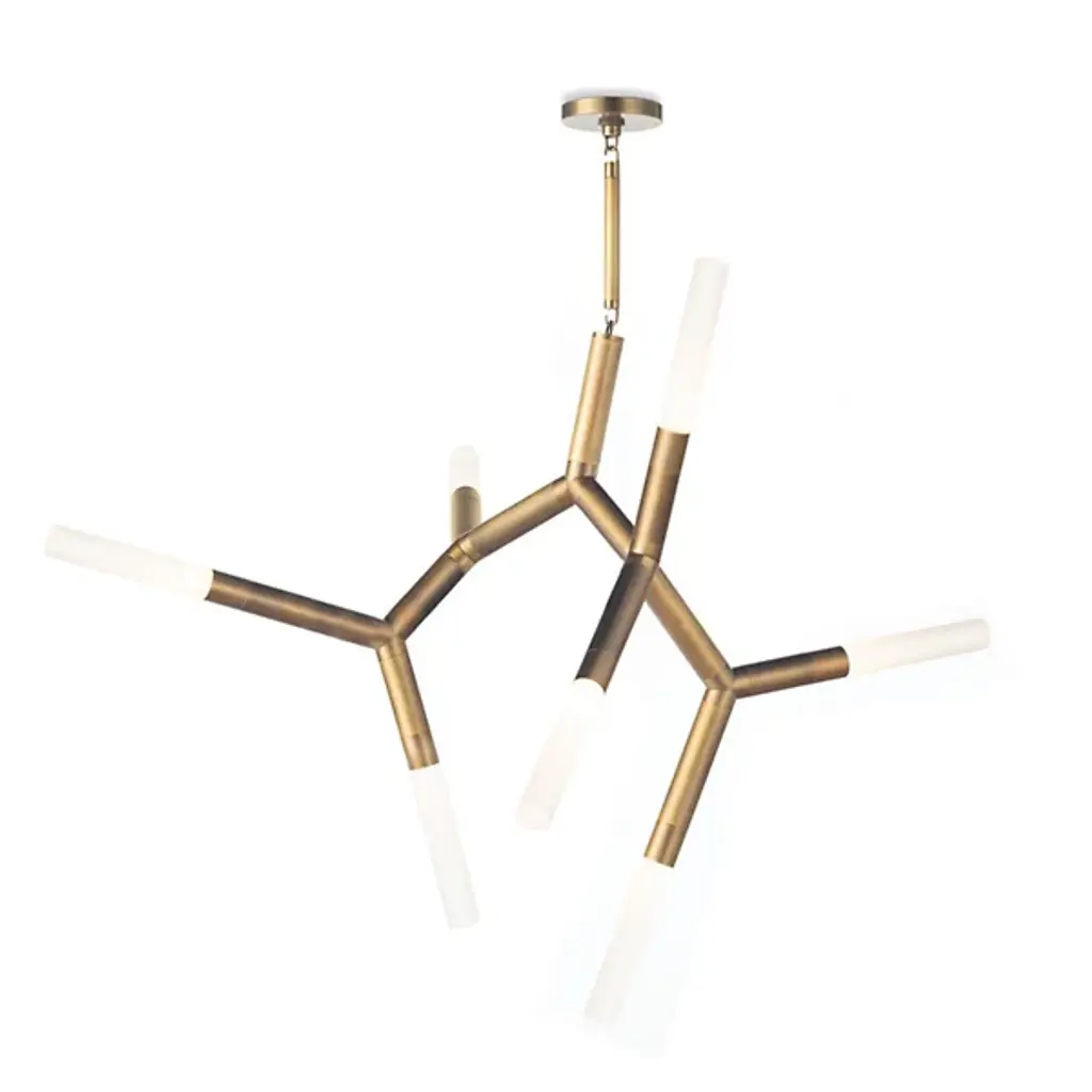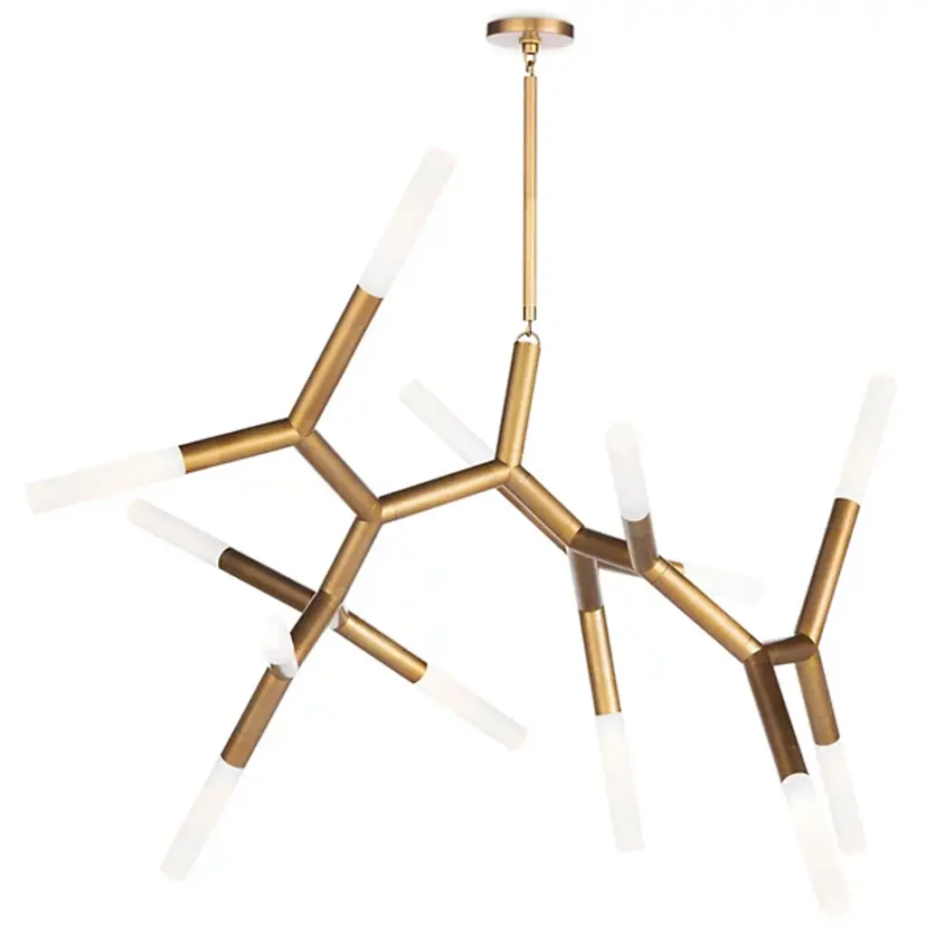 A journey for the eyes is in store with the branching light paths of the Traveler LED Chandelier from Regina Andrew. This modern piece evokes the airy, dynamic personality of hanging mobile sculptures. This chandelier is designed to hang at a slight angle for added drama. The tubular metal structure sends the eyes moving with a bevy of angle shifts. The structure’s time-tested finish looks stunning against the crisp acrylic rods topping the internal lamping. These acrylic rods draw impressive linear highlights overhead. The light mellows through the acrylic for a clean, approachable glow.