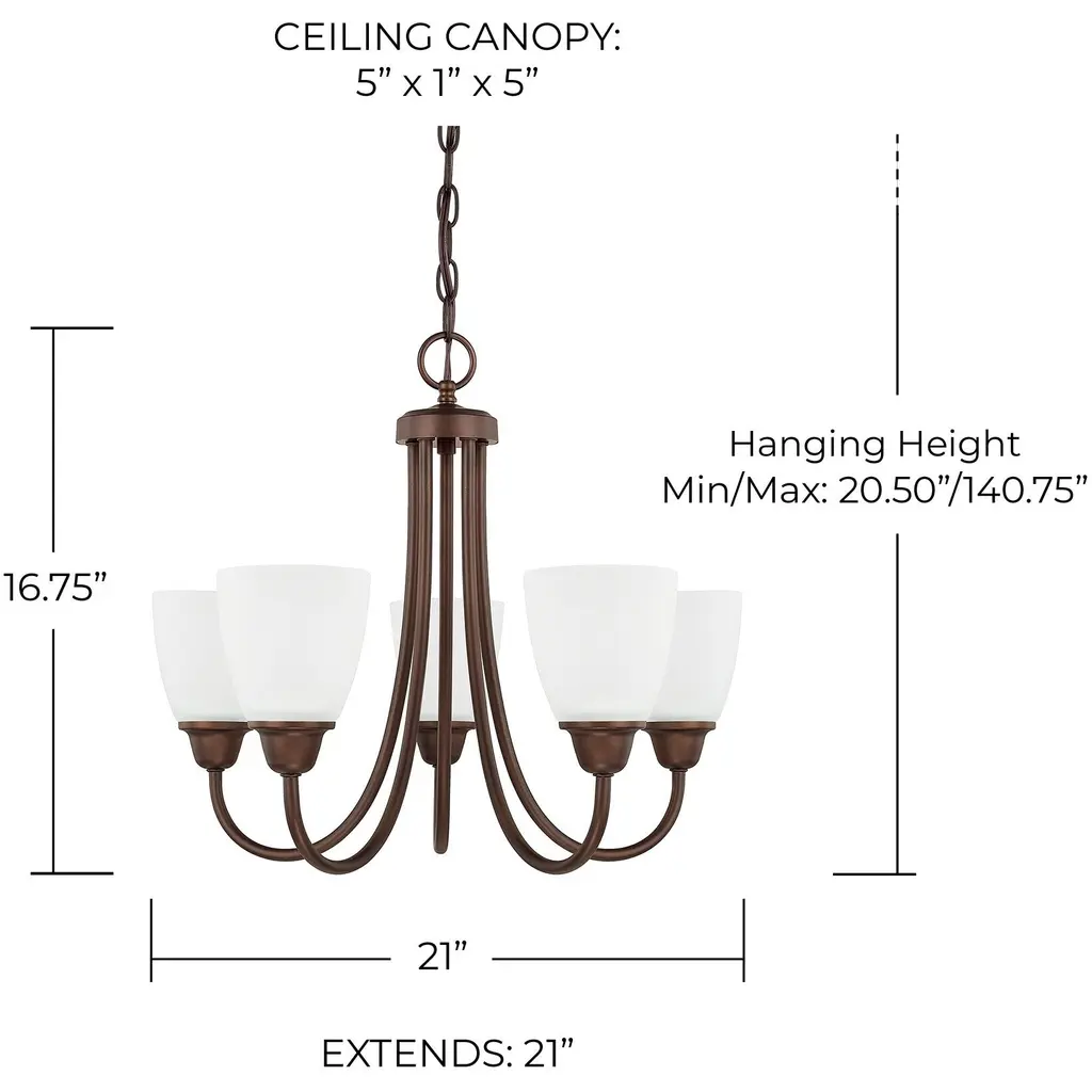 21" 5-Light Acid Washed Glass Chandelier in Bronze