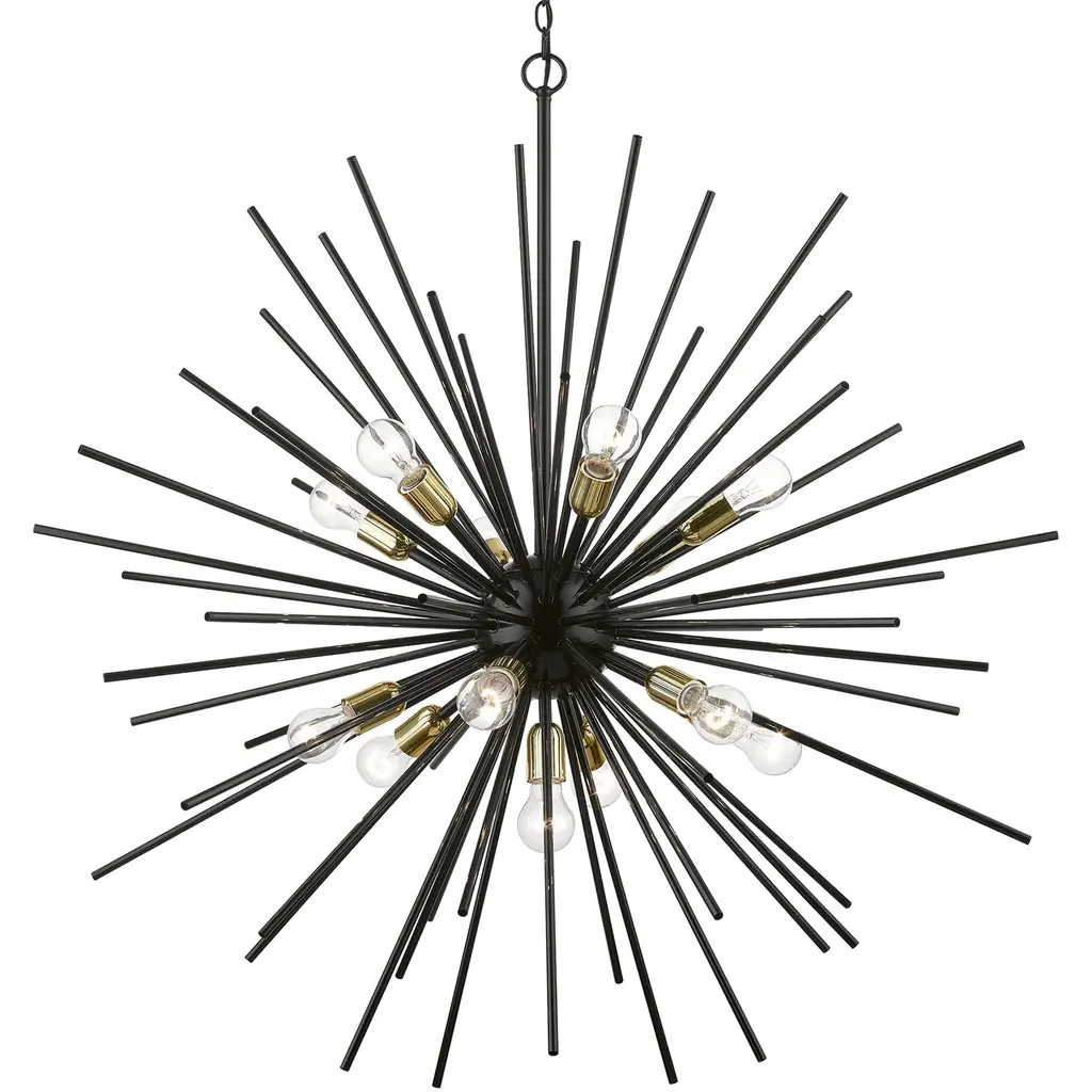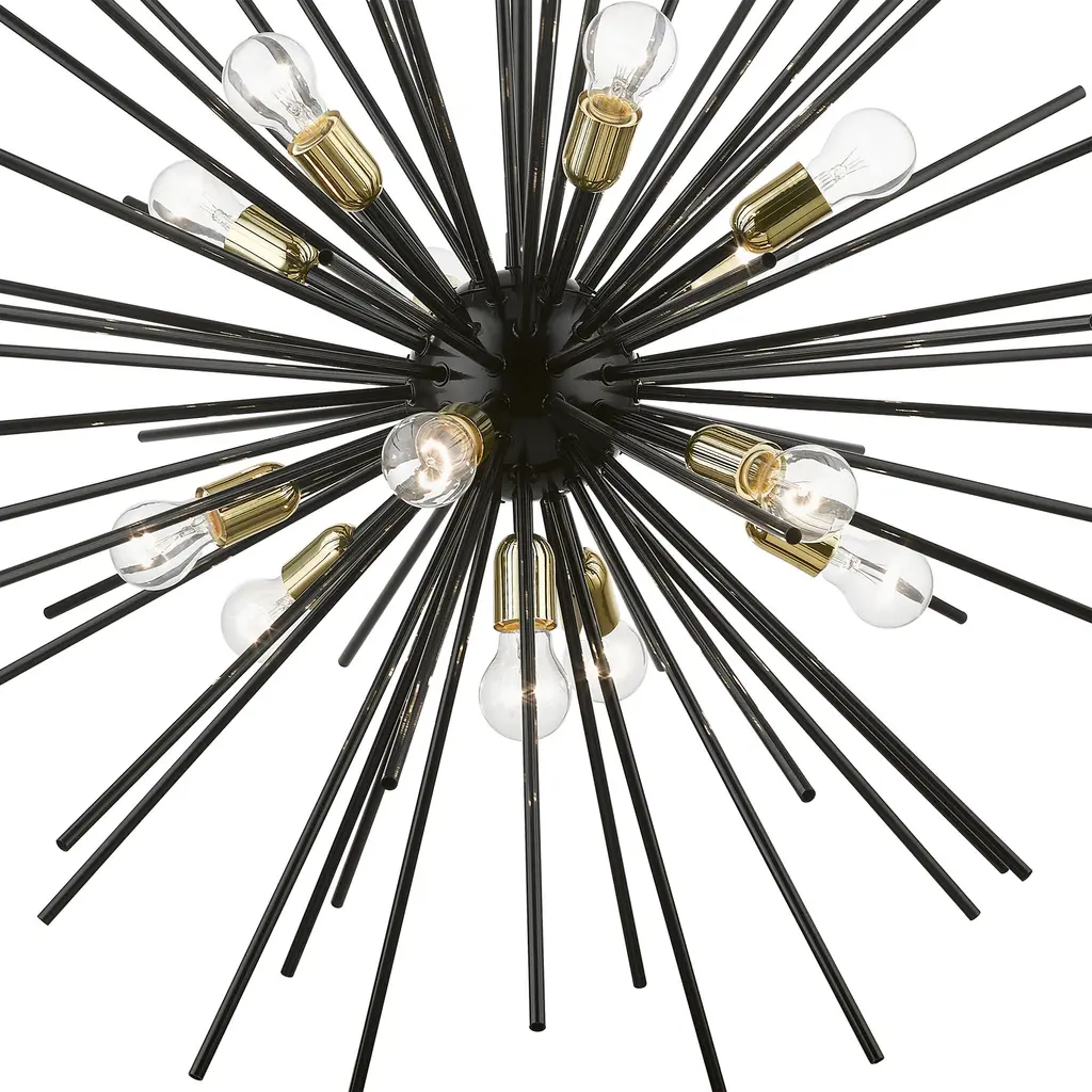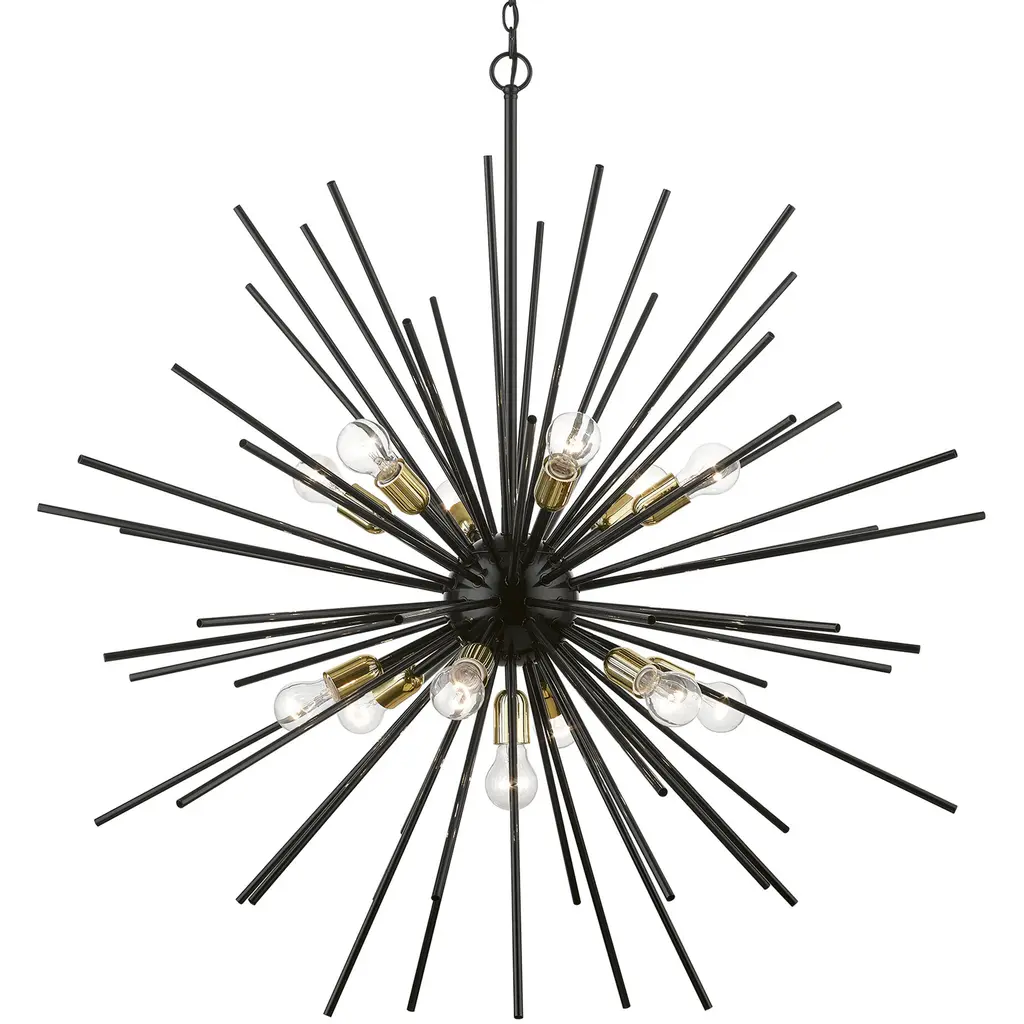 Tribeca 13 Light 42 Inch Shiny Black With Polished Brass Accents Foyer Chandelier Ceiling Light, Extra Large