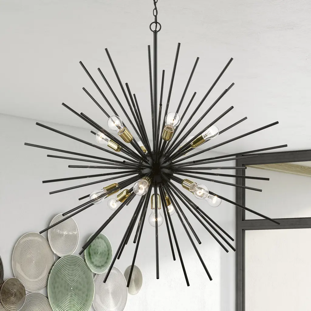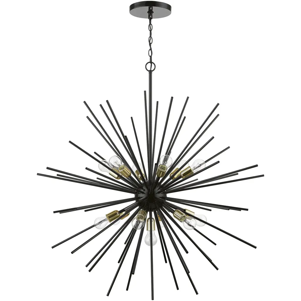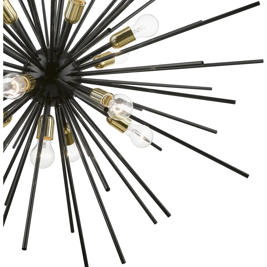 Tribeca 13 Light 42 Inch Shiny Black With Polished Brass Accents Foyer Chandelier Ceiling Light, Extra Large