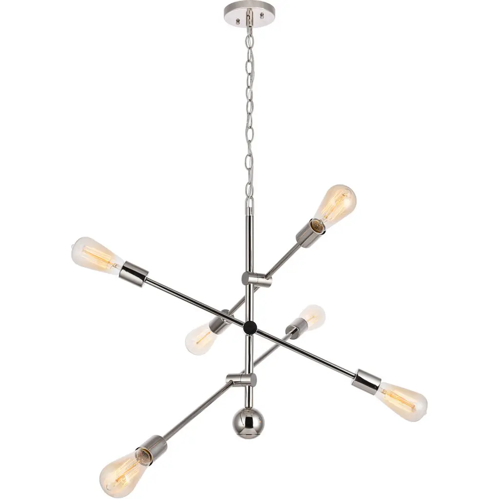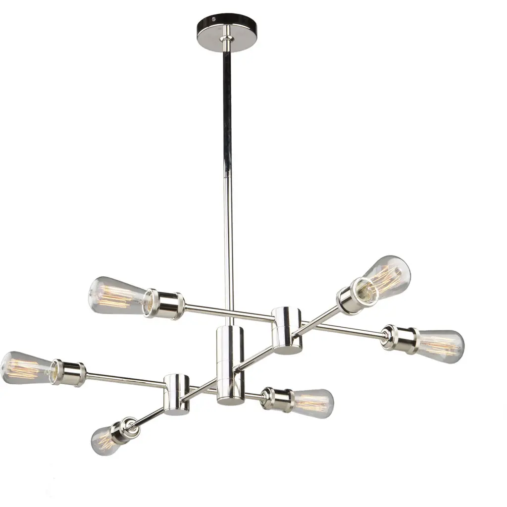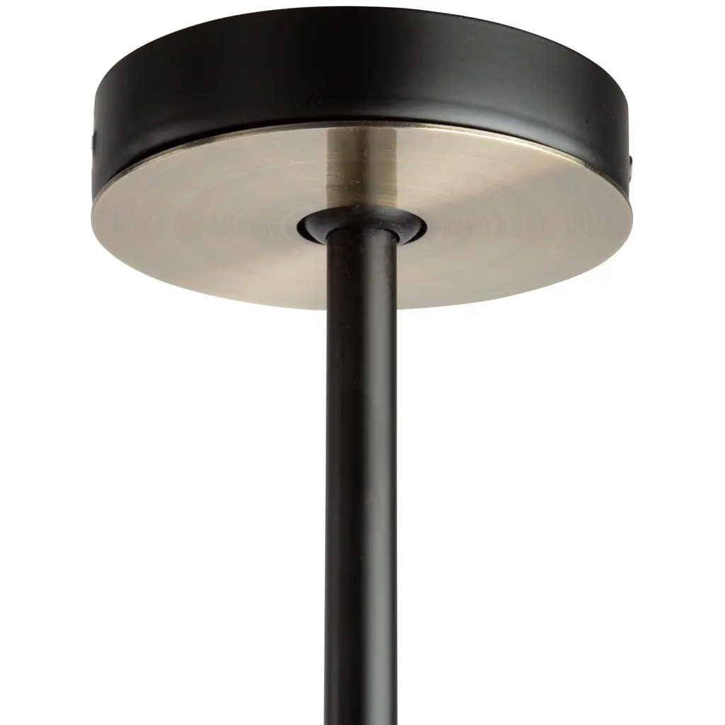 Modular in design, the "Tribeca" series elegantly adopts the beauty of retro Edison bulbs (not included). This version has a trendy two tone color factor. The frame is matte black while the socket cover, arm connectors, and part of the canopy are in plated satin brass. An instant classic which brightens up any area. 6 light chandelier shown - other size also available. Comes with hang straight for sloped ceilings and multiple rods for desired height.