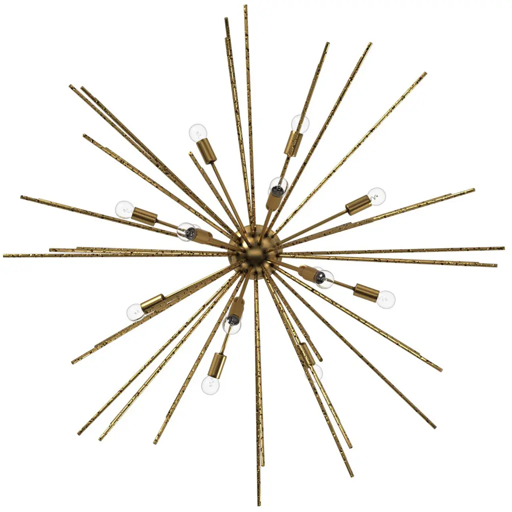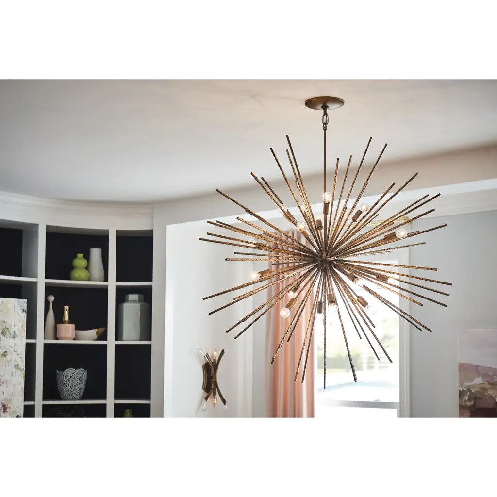 A seamless blend of vintage sophistication and contemporary clout, Tryst offers a striking mix of design elements. Hammered stems radiating from a spherical body shimmer as the light dances across the facets, creating a robust yet airy effect.