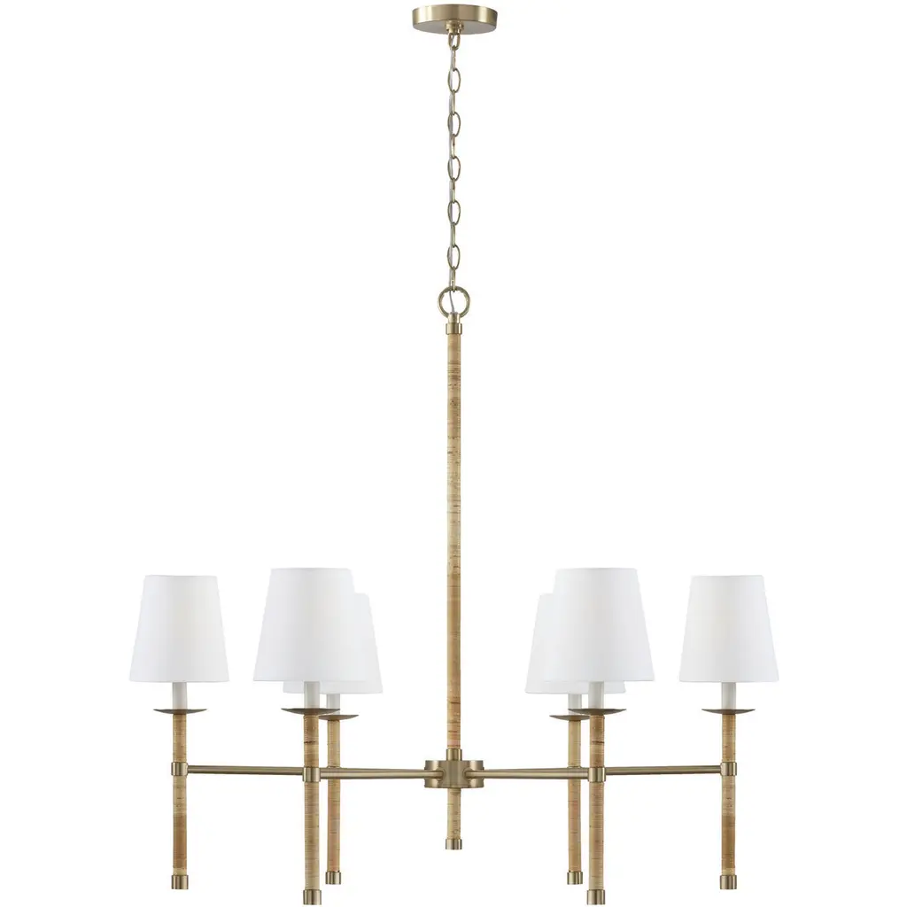 The Tulum Chandelier is presented by Capital Lighting. This attractive luminary creates a new look on natural style. Hand-wrapped rattan on elongated arms pairs perfectly with crisp shading and hints of metallic finish to bring a touch of bohemian chic to locales of choice. Display as a solo piece or in multiples to bring your illumination plans to life.