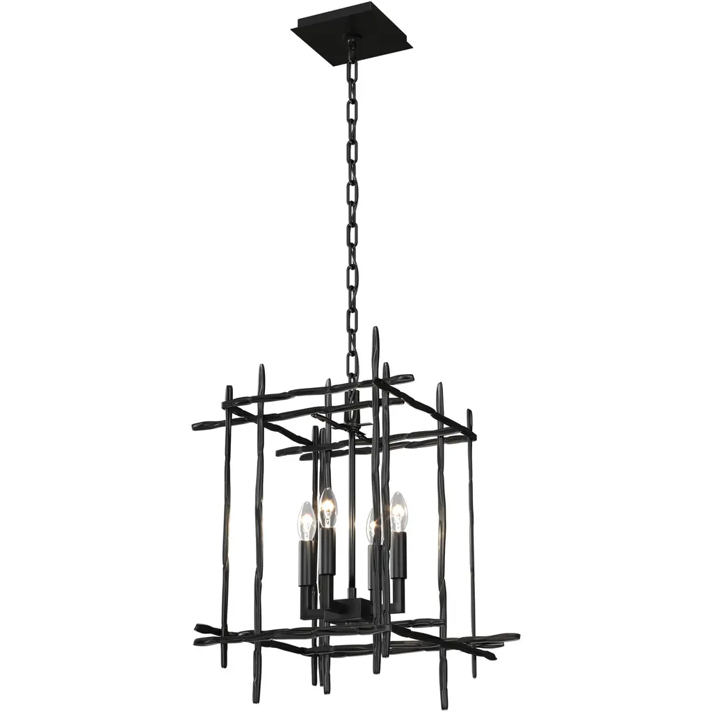 A smaller version of the Tura 4-Light Pendant, this eye-catching chain-hung fixture is perfect to light hallways and corridors, in multiples over a kitchen island and in other spaces where functional, yet beautiful lighting is needed. Hand-hammered aluminum pieces intersect at perpendicular angles, creating a modern open cage-like structure.