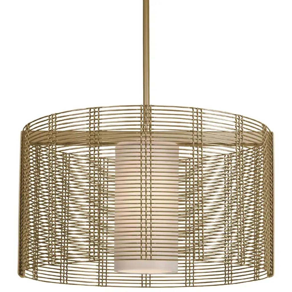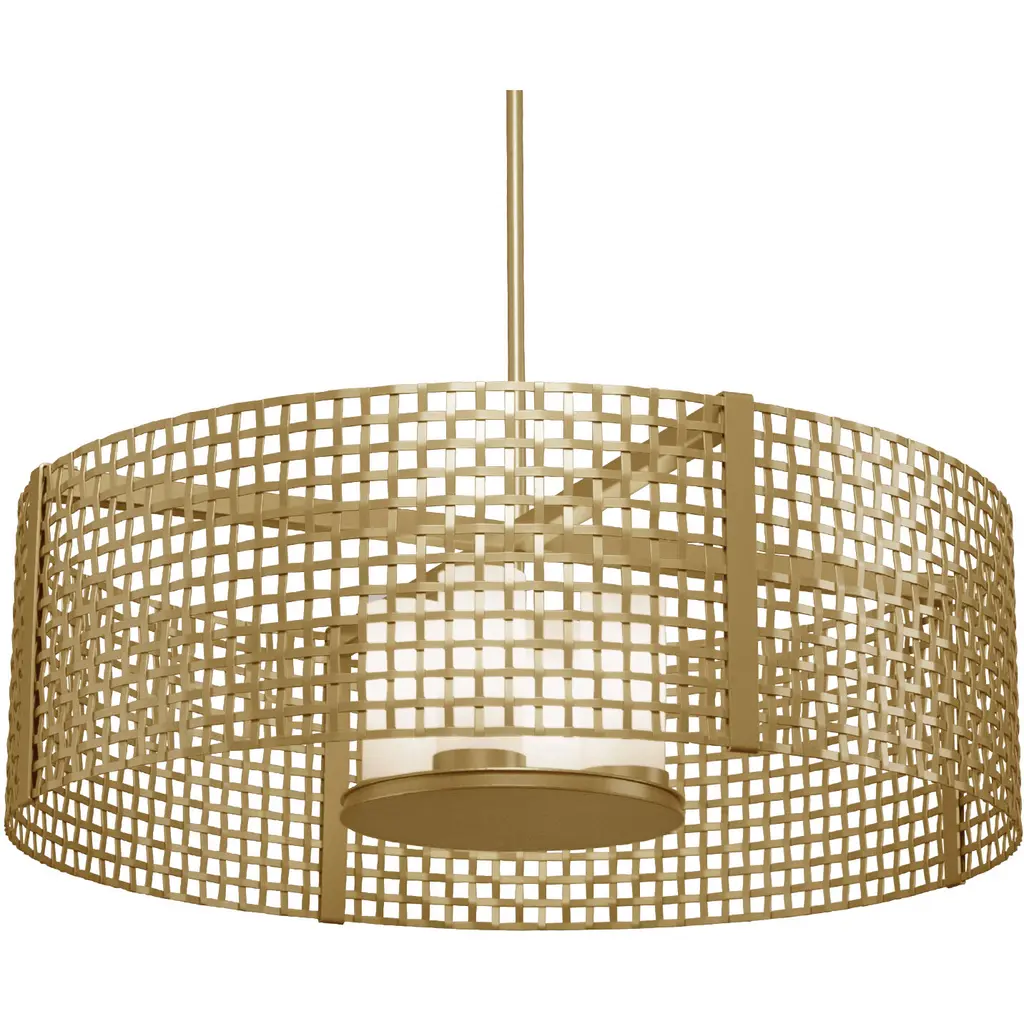 Tweed Drum with Linen Shade-24-Gilded Brass-Threaded Rod Suspension-E26