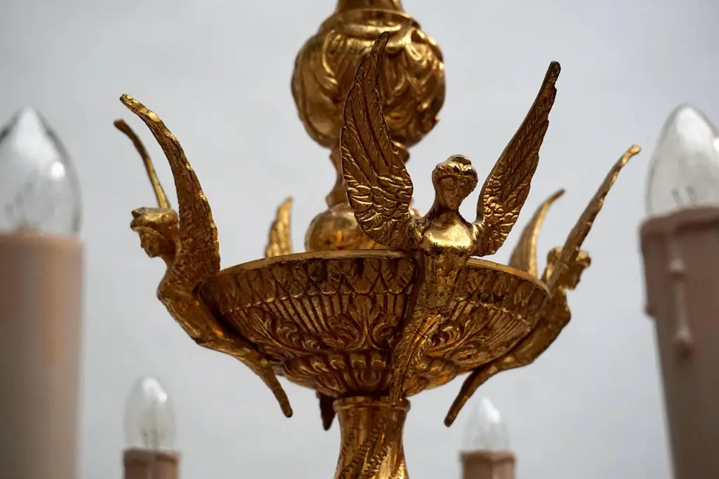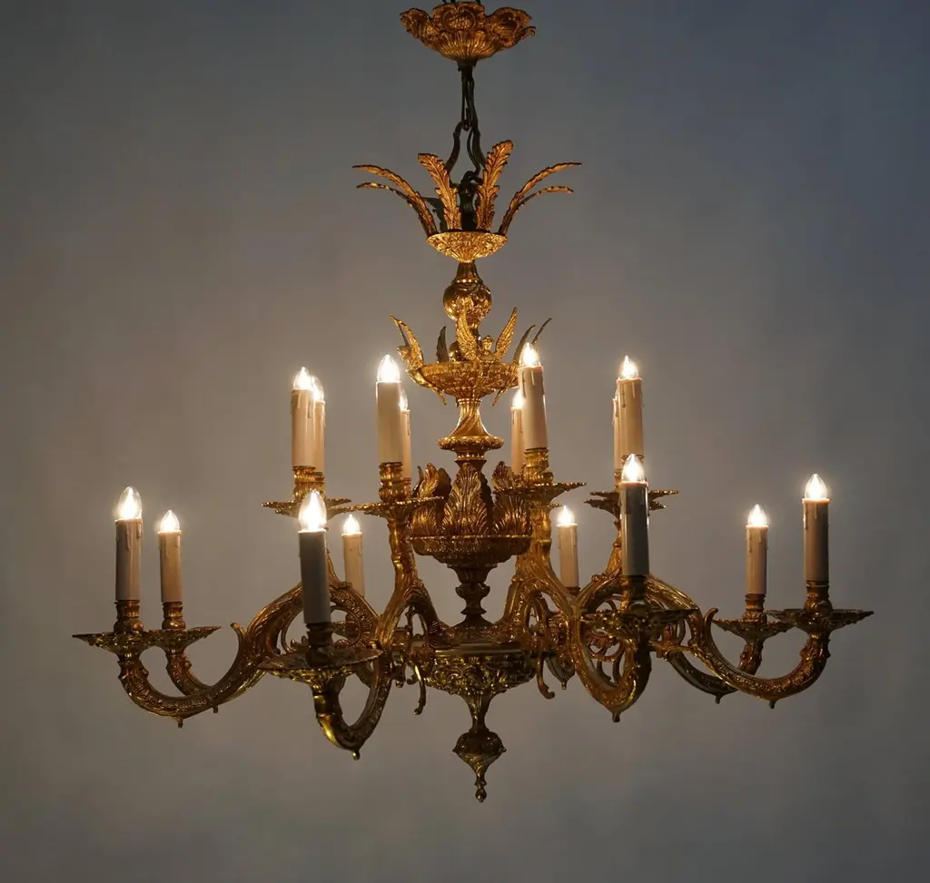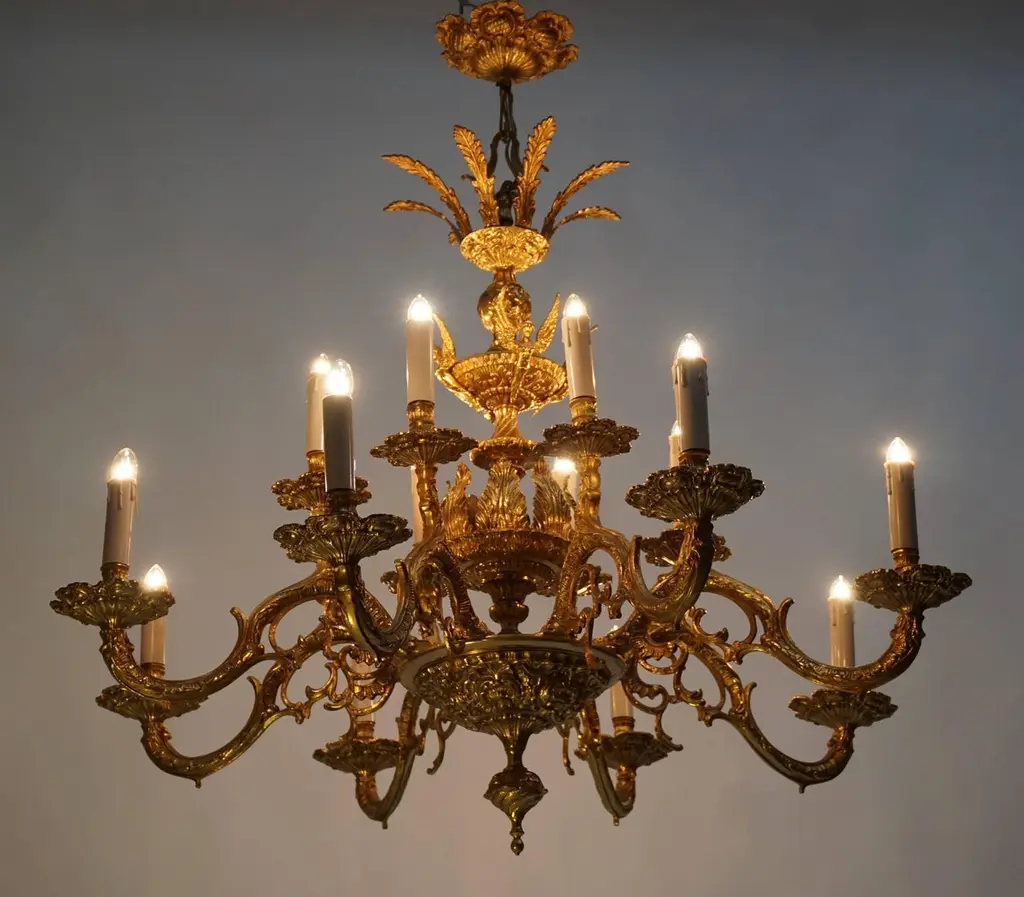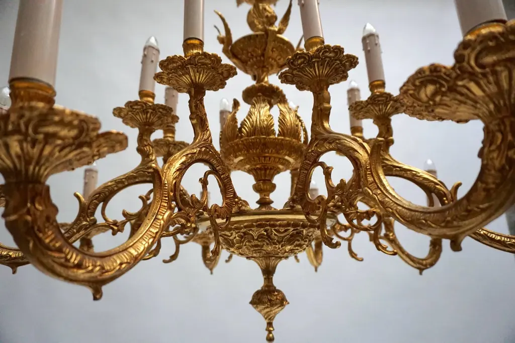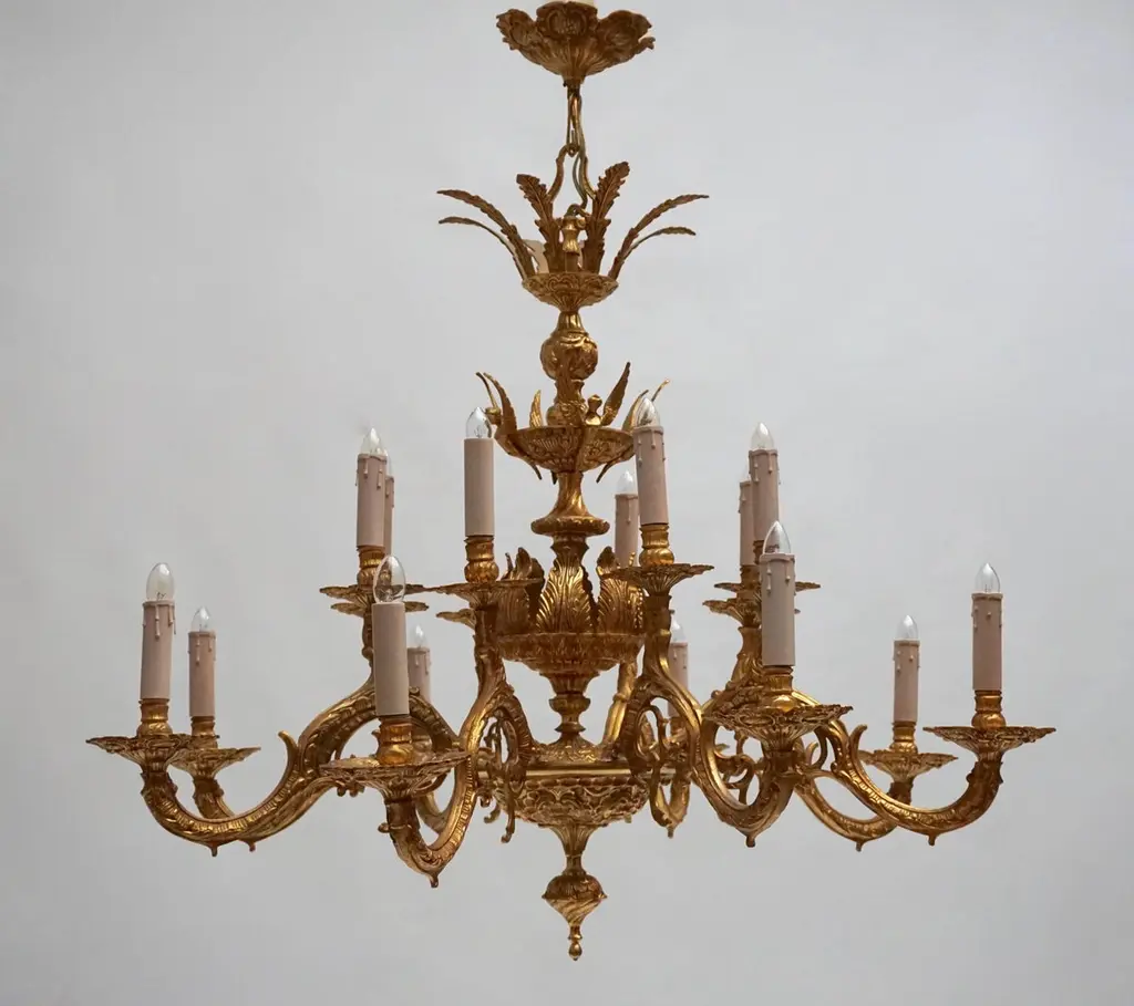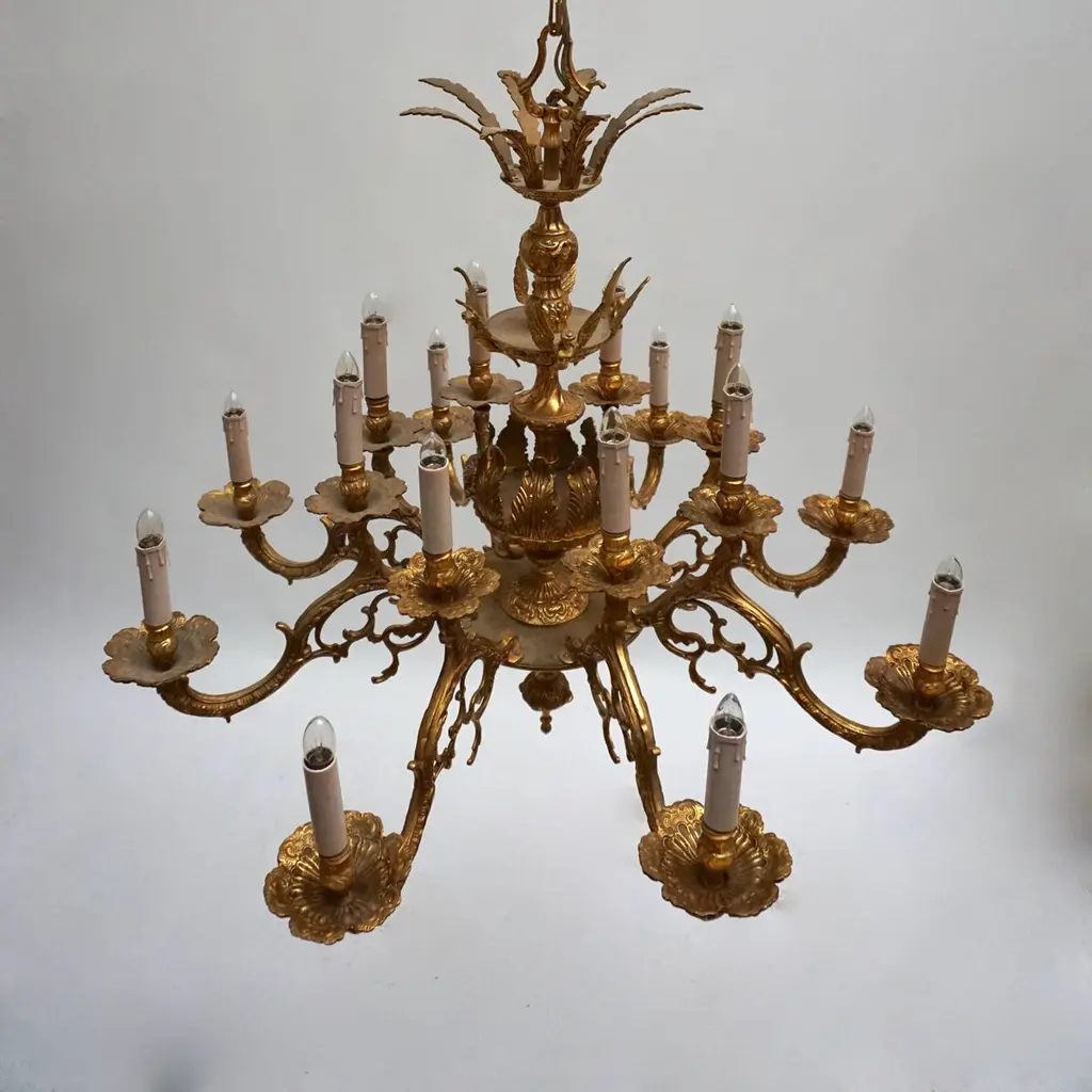 A lovely large Italian sixteen arms gilt metal chandelier.Measures: Diameter 90 cm.Height 90 cm.The light requires sixteen single E14 screw fit lightbulbs (60Watt max.) LED compatible.