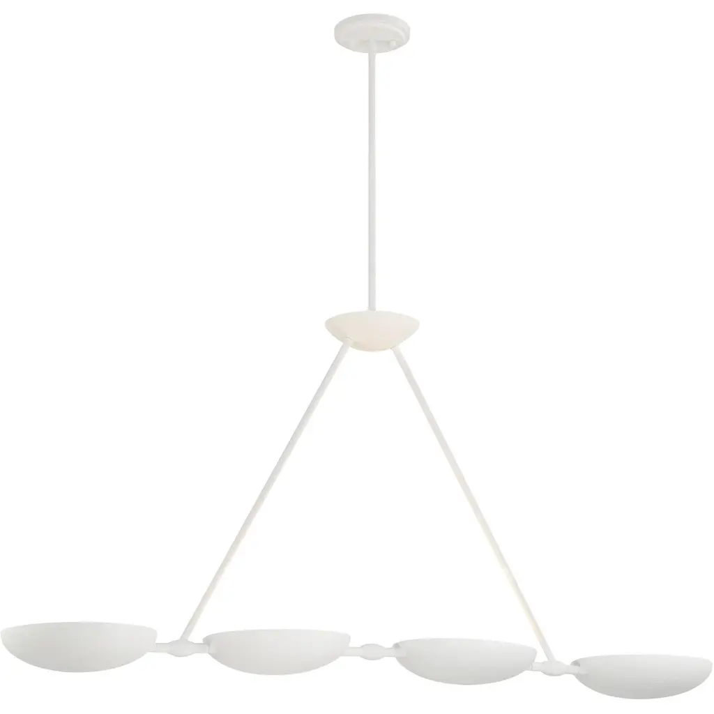 The Undertas Chandelier from George Kovacs arranges steel discs in a tiered composition that bridges mid-century and current design principles. Each disc floats horizontally, supported by slender stems that radiate from the central hub. The steel construction emphasizes clean lines and precise geometry while maintaining structural integrity. The fixture's balanced proportions create a visual tempo through repeated circular forms. Its design allows each disc to stand distinctly while contributing to the overall sculptural effect.