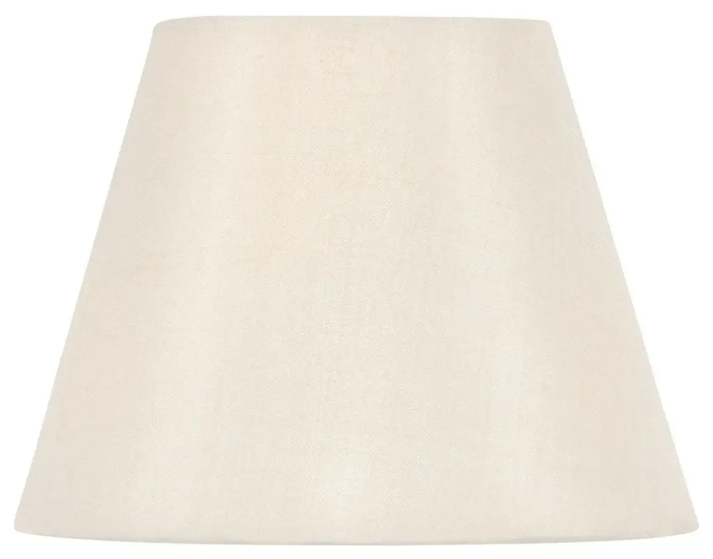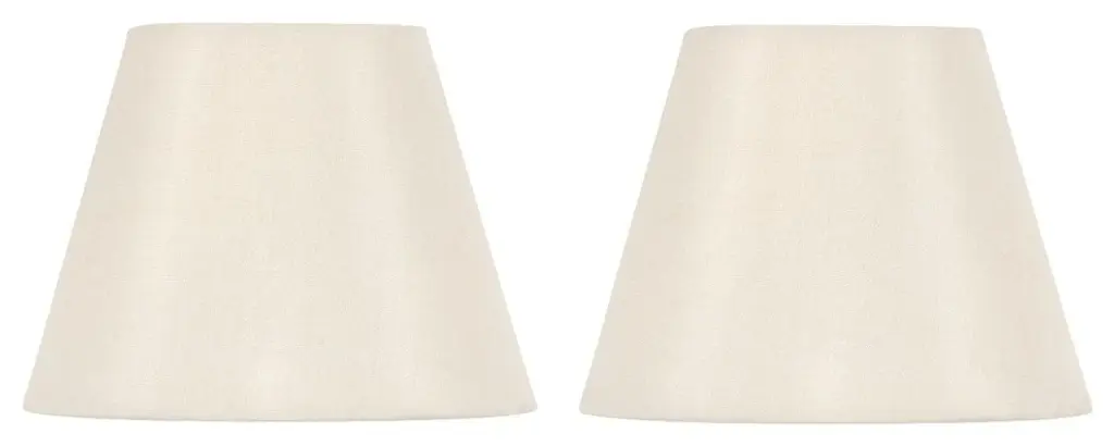 Upgradelights 5 Inch Set of 2 White English Barrel Silk Chandelier ShadesThese All Natural White Silk Chandelier shade. Shade has a clean rolled edge to finish as well as a brass flame clip (to clip onto a 40 watt candelabra bulb). Shade Dimensions: 2 inches across the top, 5 inches across the bottom and have a side slant of 4 inches Rolled edge Hardback All silk type shade in white Great Quality Set of 2 Fitter: FLAME CLIP (FC) Fitter designed to fit over a Candelabra bulb base. (Most clip-on lampshadesare designed with a flame clip) Suggested maximum wattage is 60-watt candelabra bulb. Brass frame that is also rust resistant. Lining is white.