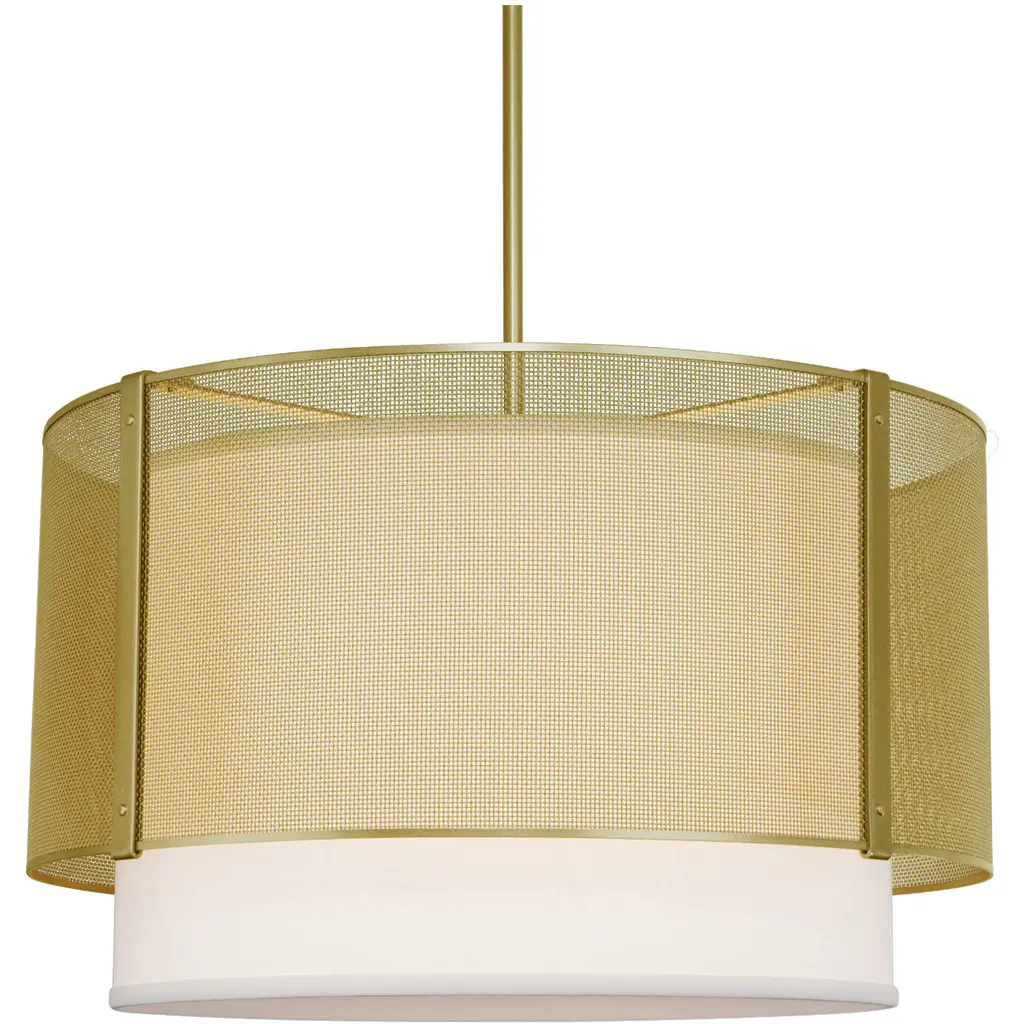 Uptown Mesh Drum with Linen Shade-24-Flat Bronze-Threaded Rod Suspension-E26