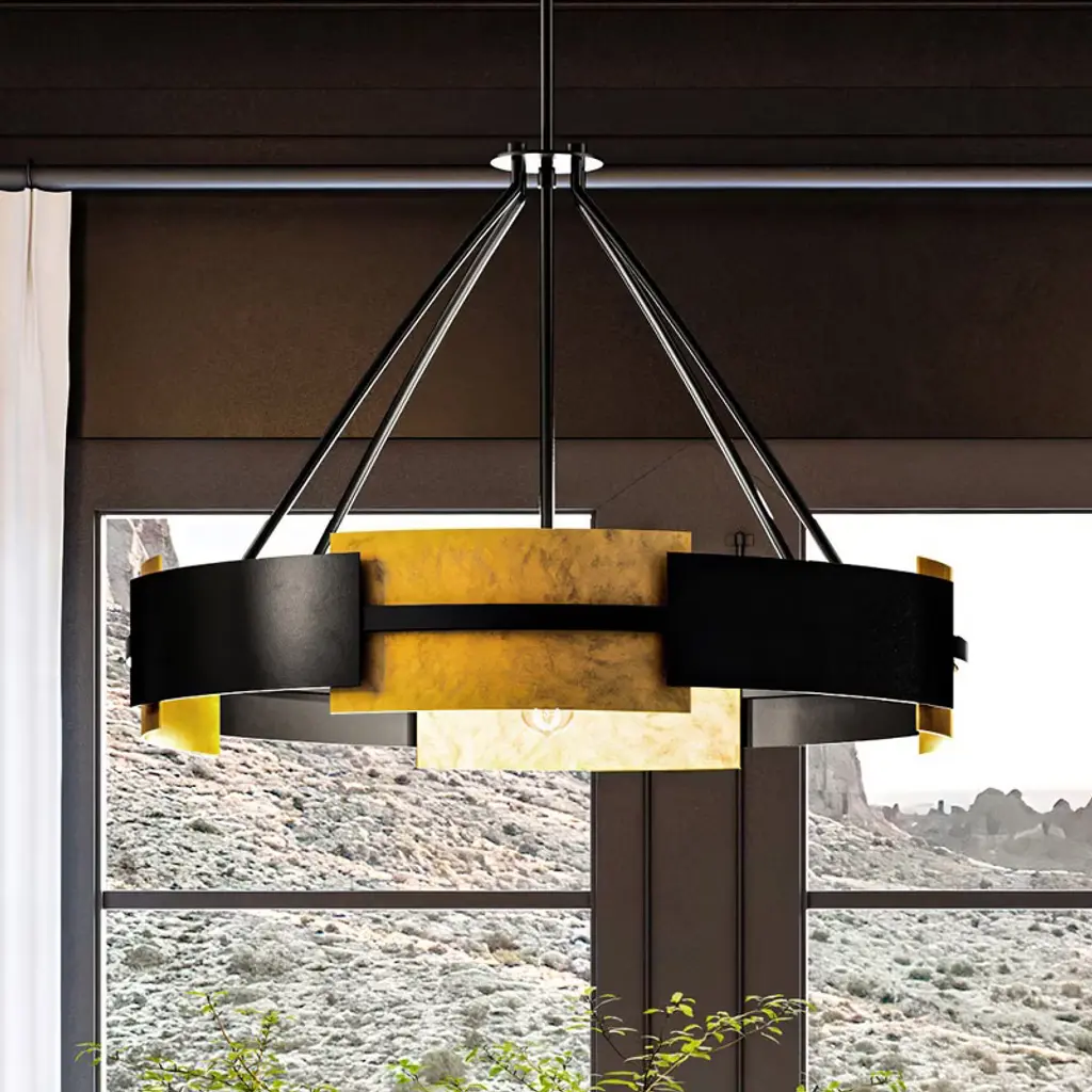 The Gambier Collection denotes a sophisticated approach to lighting fixtures by combining two finishes while exploring the contemporary industrial style. The fixtures’ sleek frame utilizes steel as it’s shade, while combining golden and midnight black colors to achieve elegance. The lighting module comes concealed behind alternating blacked-out metal plates and depressed golden leaf panels. The fixtures’ unique balance between bright and dark exude a unique contrast that works well to exemplify an up-beat contemporary interior décor.