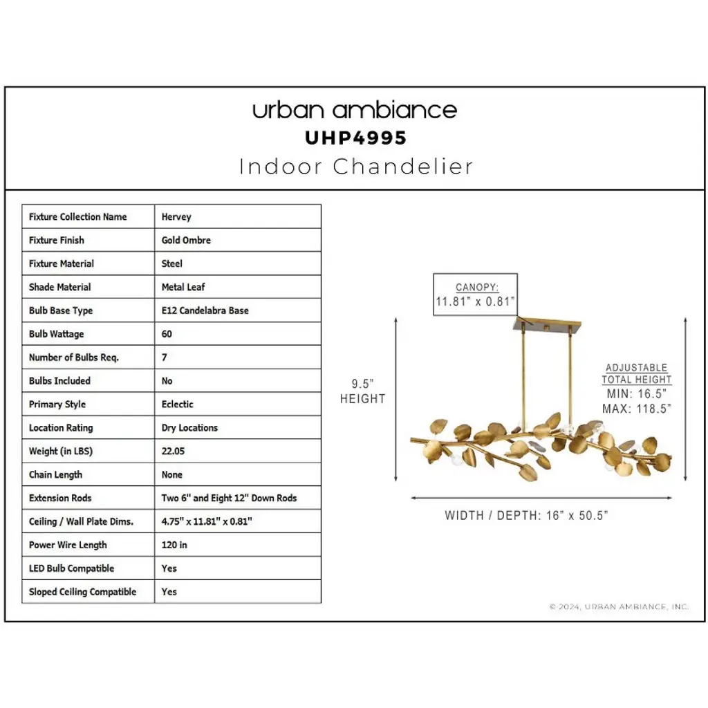 Urban Ambiance Luxury Eclectic Indoor Chandelier, 9-1/2''h X 16"w X 50-1/2''d, Gold Ombre Finish, Uhp4995