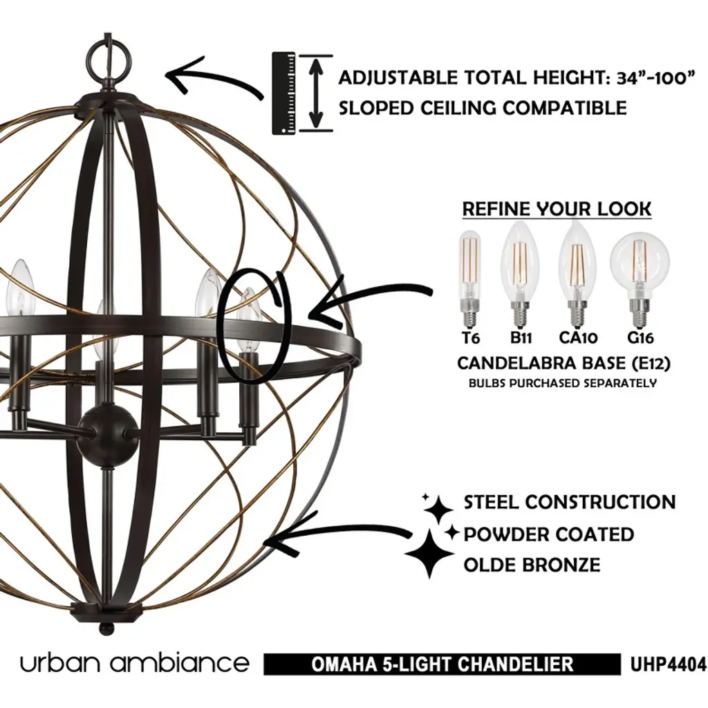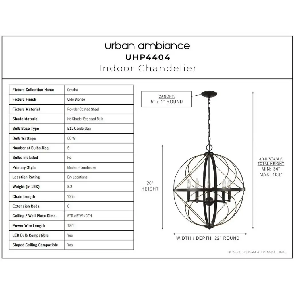 Urban Ambiance Luxury Farmhouse Chandelier 26''h X 22''w, Olde Bronze Finish, Omaha Collection, Uhp4404