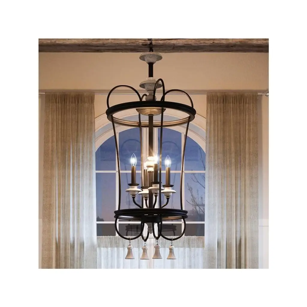 The Alicante collection of lighting fixtures comes complete with a sturdy, straight stem finely accentuated with weathered stone details. Descriptively attached to the central stem are seamlessly flowing S-shaped arms lending support to underhanging stone tassels and anchoring uplight candles. The stylish blend of evocative tones gives birth to an elegant French-inspired contemporary design perfect for a rural ambiance. The vivid detailing of the fixtures easily resonates with a dining mood. Invoking unmatched relaxation, the stunning fixtures create a balanced overall appearance suitable for a transitional living room or a farmhouse-style house.
