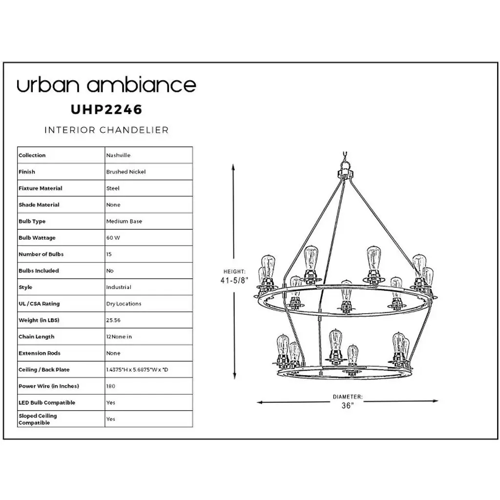 Urban Ambiance Luxury Industrial Chandelier, 41-5/8" X 36", Brushed Nickel Finish, Uhp2246