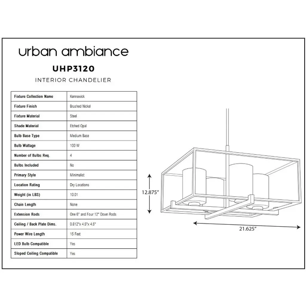 Urban Ambiance Luxury Minimalist Chandelier, 12.875"h X 21.625"w, Brushed Nickel Finish, Uhp3120