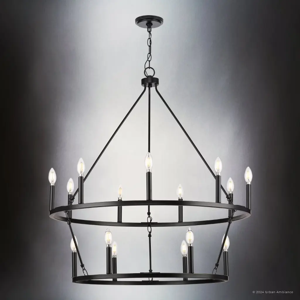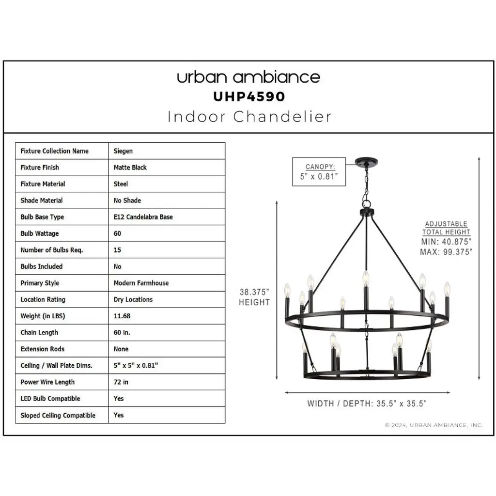 Urban Ambiance Luxury Modern Farmhouse Indoor Chandelier, 38-3/8''h X 35-1/2"w X 35-1/2''d, Matte Black Finish, Uhp4590