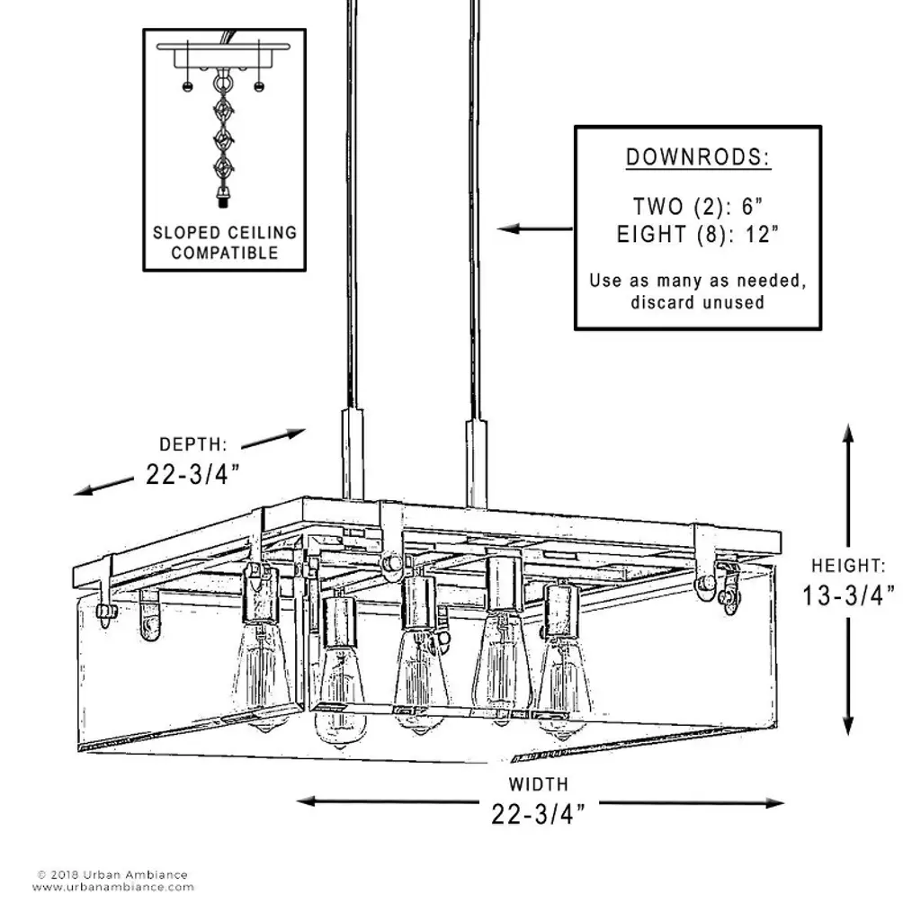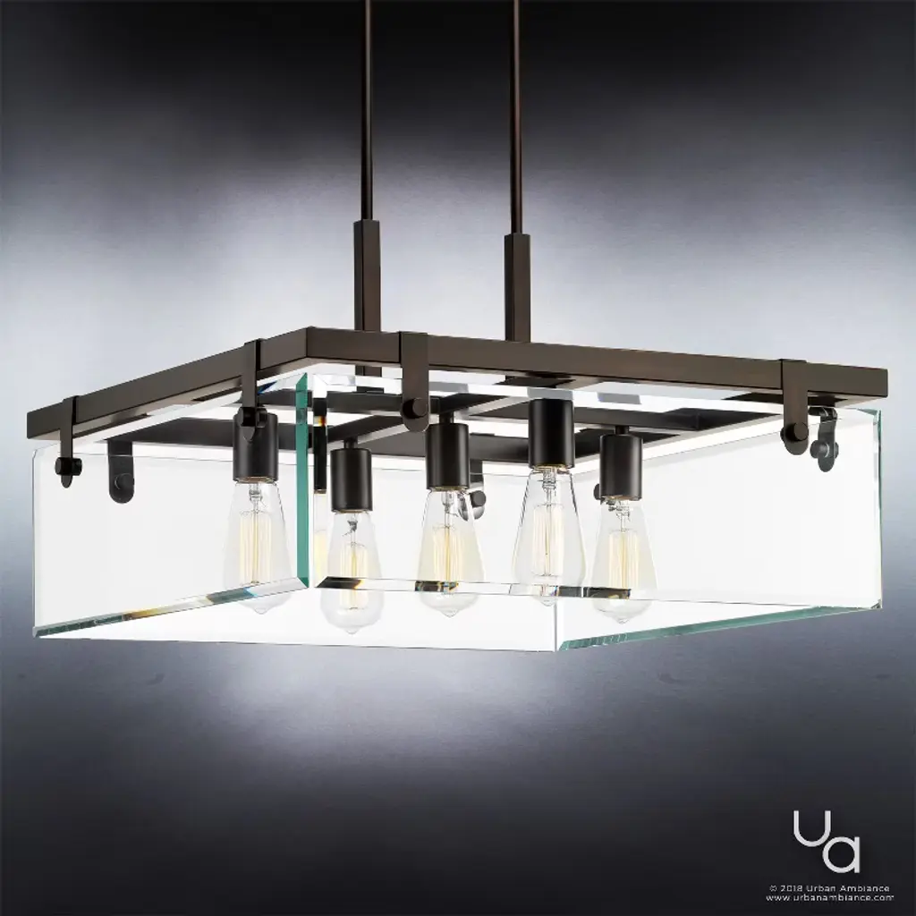 Urban Ambiance Luxury Modern Farmhouse Square Chandelier, 13-3/4"h X 22-3/4"w Sq, Olde Bronze Finish, Uhp2444