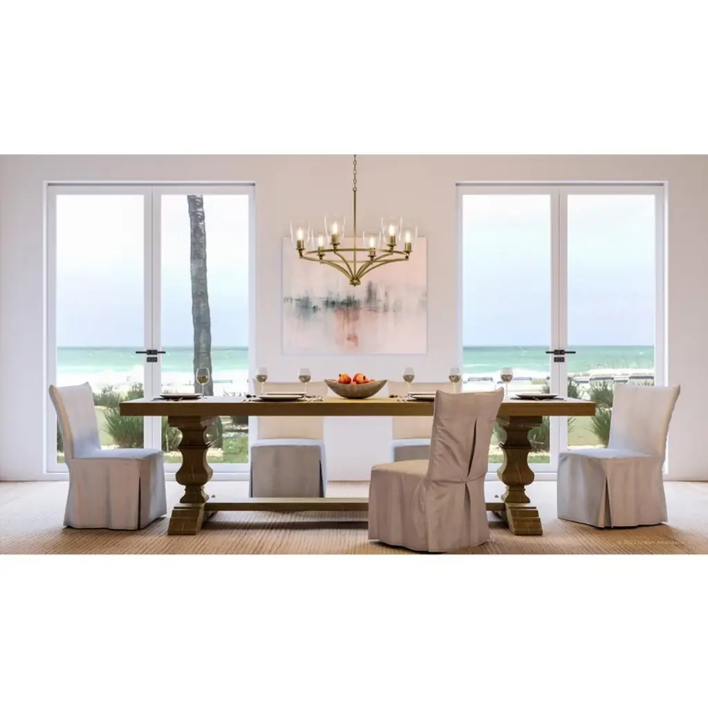 Airy and unobstructed, the Coronado Collection merges aspects of mechanical aesthetics and contemporary styles to deliver elegance into any interior space. The fixtures come fashioned as either elegant indoor chandeliers, which feature open frames, geometric designs, lantern symbolism, open cage designs, and bold angles, or exotic indoor pendants that come with open frame designs or metal domes. Defined by geometric shapes, these fixtures boast open frames except for their ceiling pendants, which come with topless conical shades made from metal or glass. The chandeliers feature open airy frames that take cage-like or lantern-inspired shapes. The chandeliers suspend from a sleek stem that drops from the canopy through the ring holding the linear metallic rods together and branches out near the base of the frame into curved arms that terminates into candelabra base bulbs.