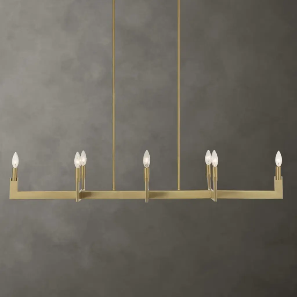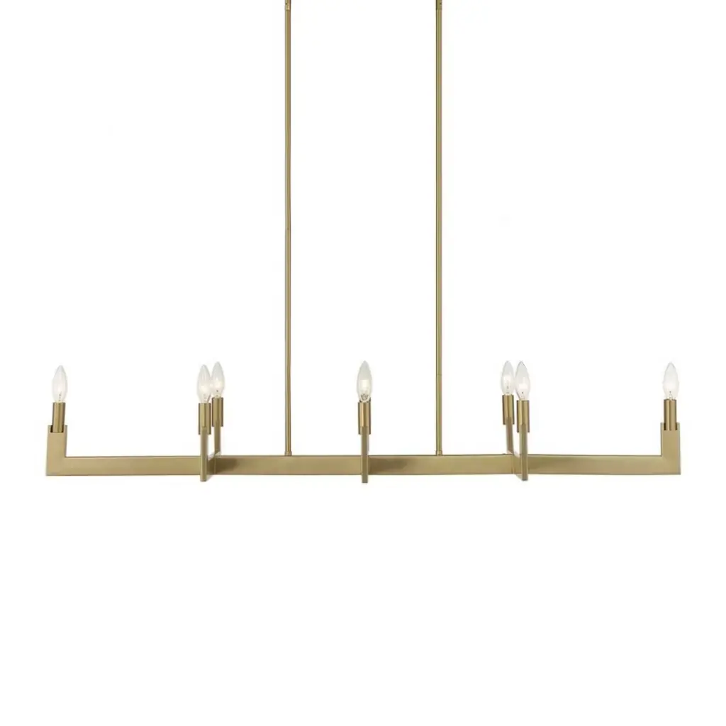 The Uttermost Cordoba 8 Light Linear Chandelier blends strength and elegance with a refined linear silhouette. Crafted from high-quality iron, this chandelier provides durability while maintaining a modern yet timeless aesthetic. With dimensions of 51.5 inches wide, 14.25 inches deep, and 8.5 inches high, it is designed to illuminate long dining tables, kitchen islands, or open living spaces with ease. Its eight lights ensure bright and even illumination, making it a striking centerpiece for contemporary or transitional interiors. Key Benefits: Eight-light linear design offers excellent illumination coverageSlim 8.5-inch height makes it suitable for both low and high ceilingsDurable iron construction for lasting qualityPerfect width (51.5 inches) for large dining or entertaining areasAdds a bold, modern statement to interiors