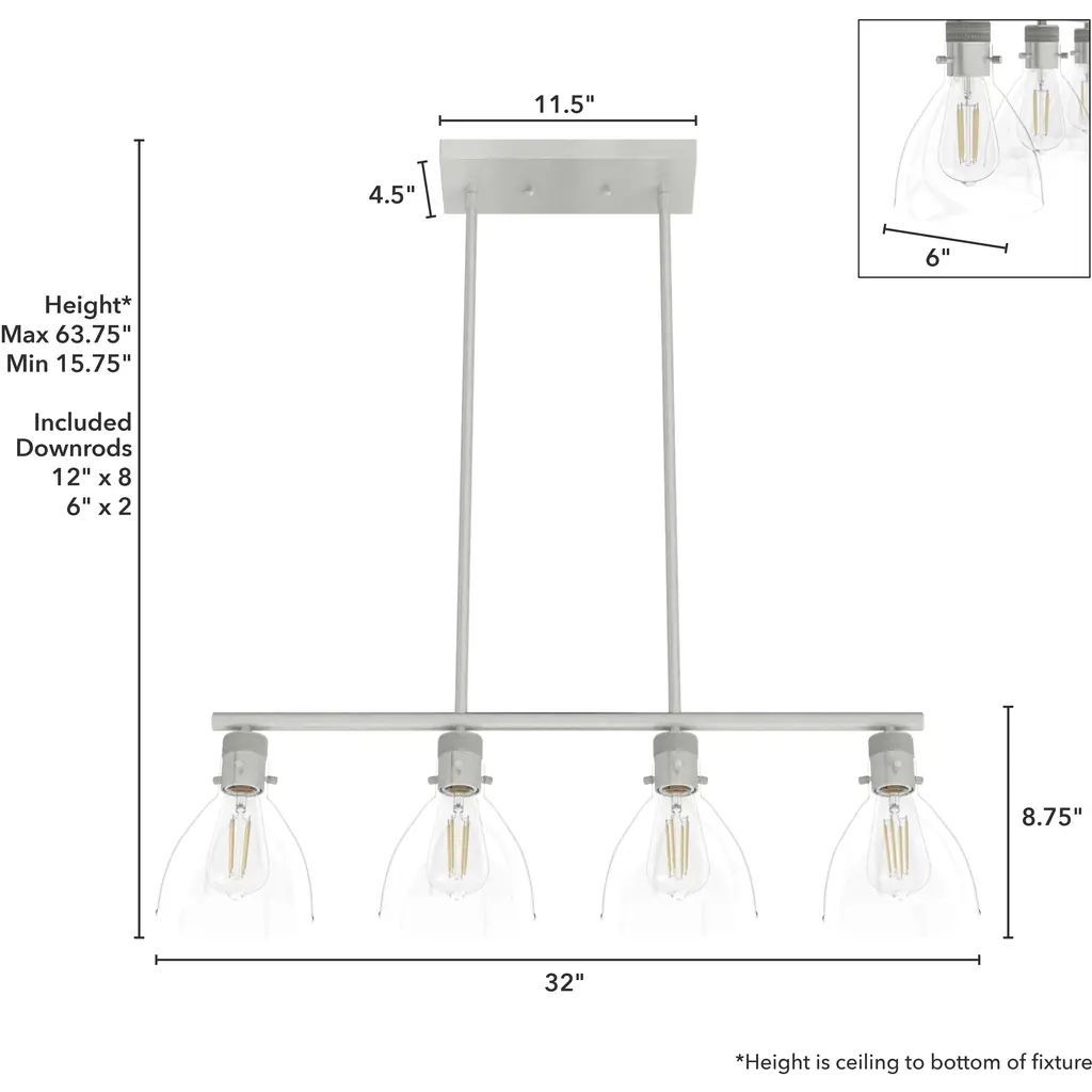 Van Nuys 4 Light 32 Inch Brushed Nickel Linear Chandelier Ceiling Light, Medium