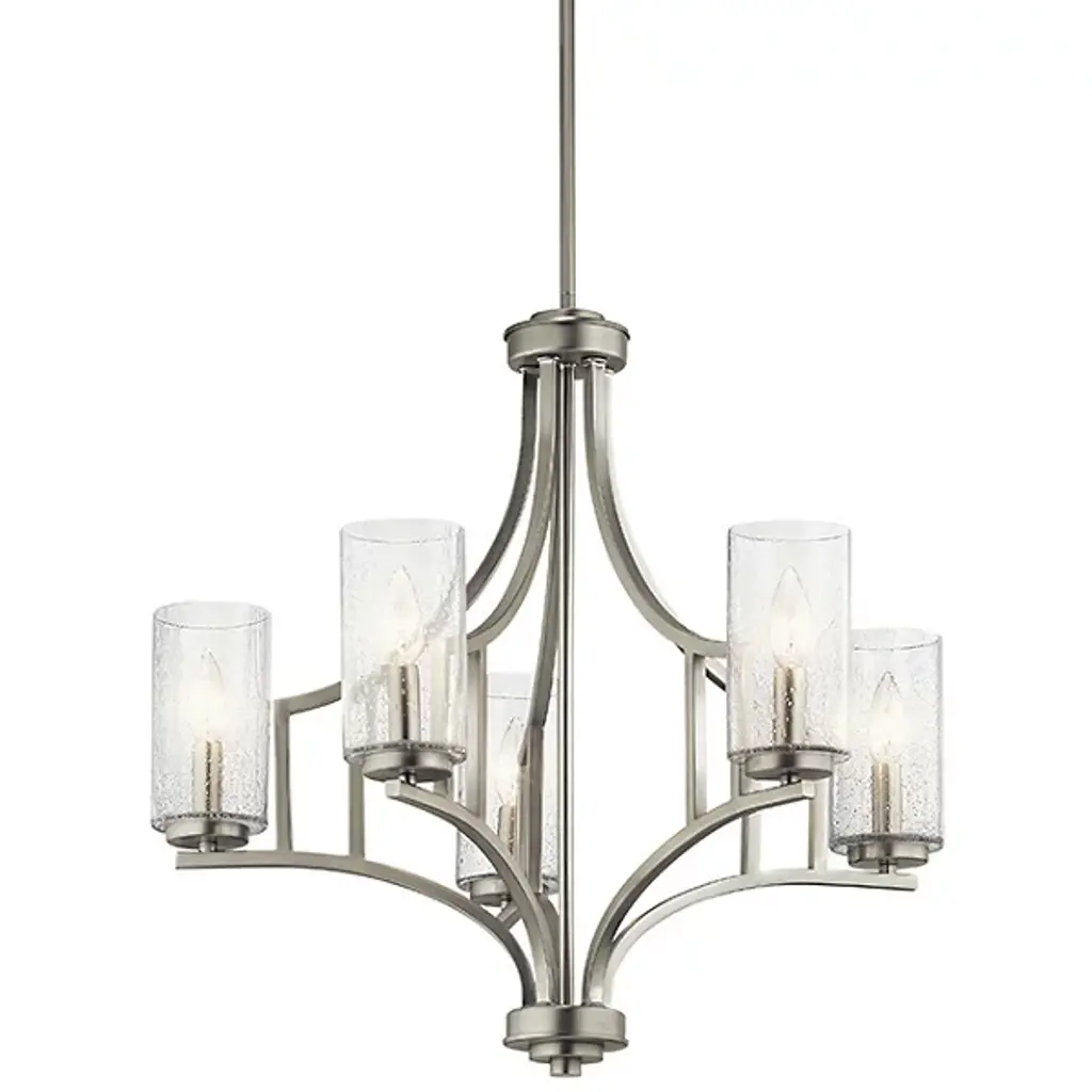 The Vara 5 Light Chandelier by Kichler integrates the Clear Seeded glass with a well-built handle that offers a contemporary and traditional style. It features a 5-light design combined with warm finishes that offers sophistication that will go great in your home. Its magnificent framework is made with Steel giving it a great appearance.