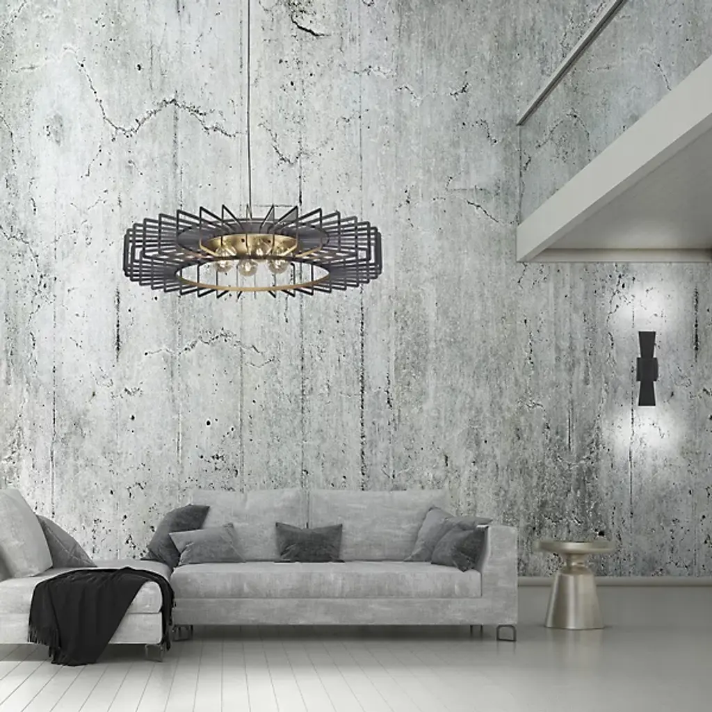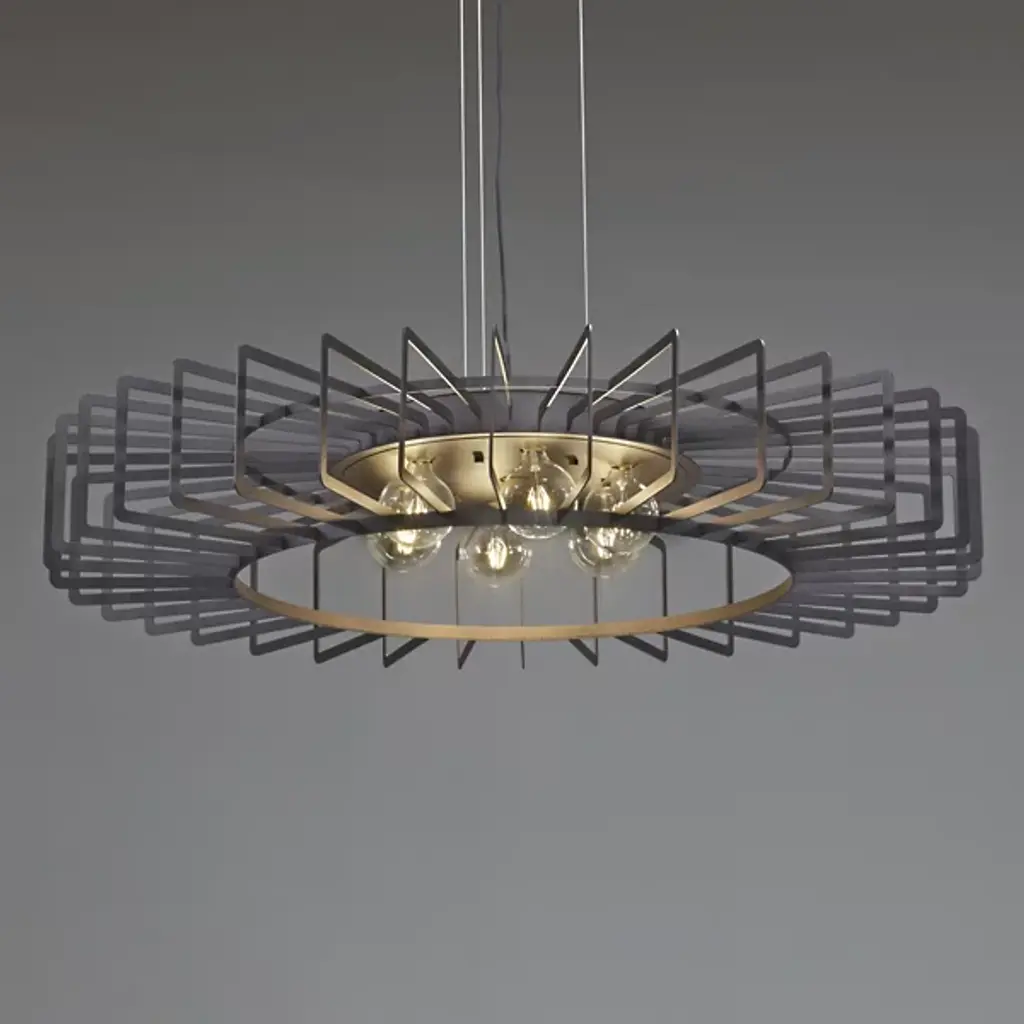 Easy to appreciate at any time of day, the Vasi 21472 Chandelier from Ultralights is a statement piece enhanced by repeating elements. It's a high design piece with a contemporary personality. As a metal construction, this chandelier gives off a bold and enduring character. It slices overhead with sleek metal frames arranged like a short drum. The frames create a sense of awe as one looks through them and sees a bevy of repeating lines. The sharp lines point your eyes at the gorgeous bare bulb setup. The crisp bulbs glaze the metal frames to accentuate an already dramatic silhouette. The outpouring light creates a simply pleasant ambiance.