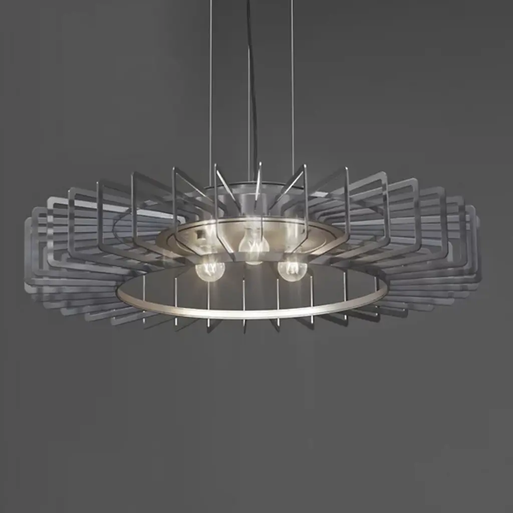 Easy to appreciate at any time of day, the Vasi 21472 Chandelier from Ultralights is a statement piece enhanced by repeating elements. It's a high design piece with a contemporary personality. As a metal construction, this chandelier gives off a bold and enduring character. It slices overhead with sleek metal frames arranged like a short drum. The frames create a sense of awe as one looks through them and sees a bevy of repeating lines. The sharp lines point your eyes at the gorgeous bare bulb setup. The crisp bulbs glaze the metal frames to accentuate an already dramatic silhouette. The outpouring light creates a simply pleasant ambiance.