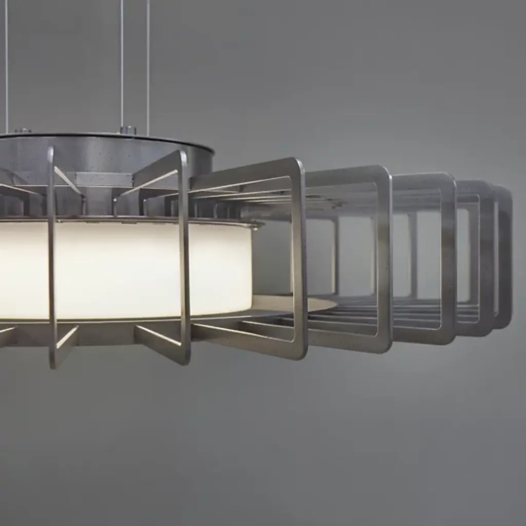 Radiant with or without the lights on. Prepare to be mesmerized by the repeating shapes and resonating glow of the Vasi 21473 LED Chandelier from Ultralights. The chandelier serves up a real taste of contemporary high design. It grabs your attention from across the room through its sleek metal construction. The metal takes on the shape of a frame and circles around as an intriguing pattern. The spaces in between each frame give you a peek at the charming button-like diffuser at the center. Sporting bright LEDs, the diffuser fills up with clean, intimate light. The light touches up the metal frames as it radiates out a spacious glow.