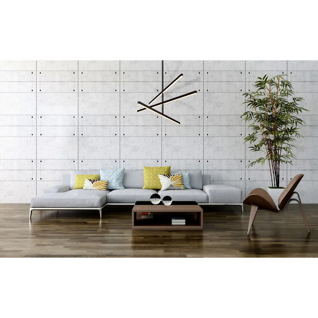 The linear lights can be configured at different heights and angles to create distinct sculptural orientations. Ordered into clean parallels or jumbled in playful asymmetry, Vega can be customized to complement any space.
