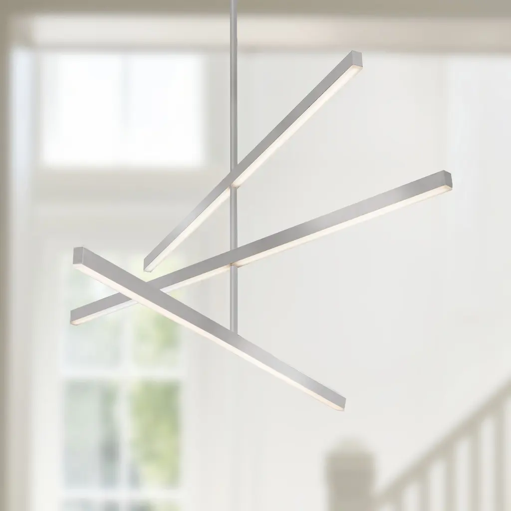 The linear lights can be configured at different heights and angles to create distinct sculptural orientations. Ordered into clean parallels or jumbled in playful asymmetry, Vega can be customized to complement any space.