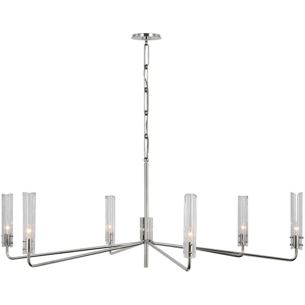 Designed with allusion to traditional chandelier aesthetics, the Vela Chandelier takes the motif, and gives it a clean contemporary spin. The open design focuses on the beauty of simplicity and craftsmanship—5 lights in the round, with sleek glass cylinders housing the illumination.