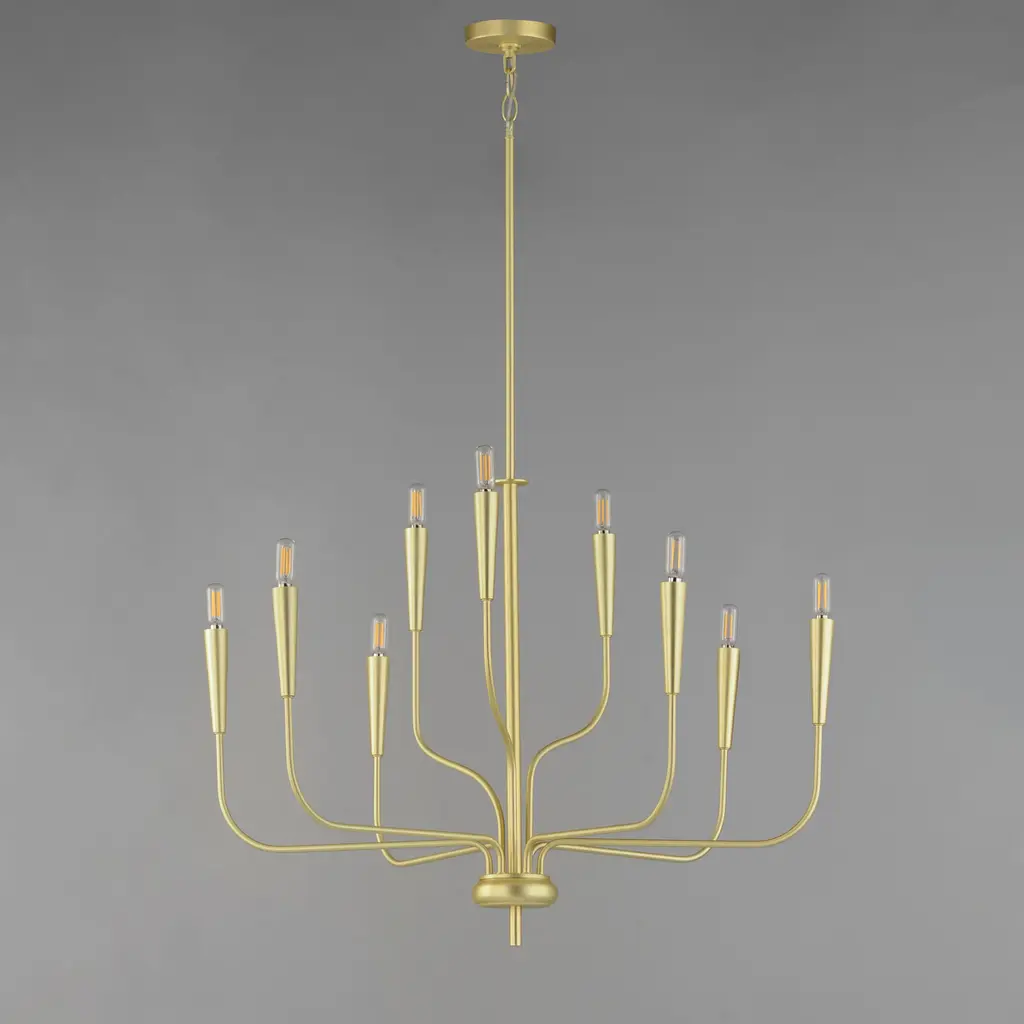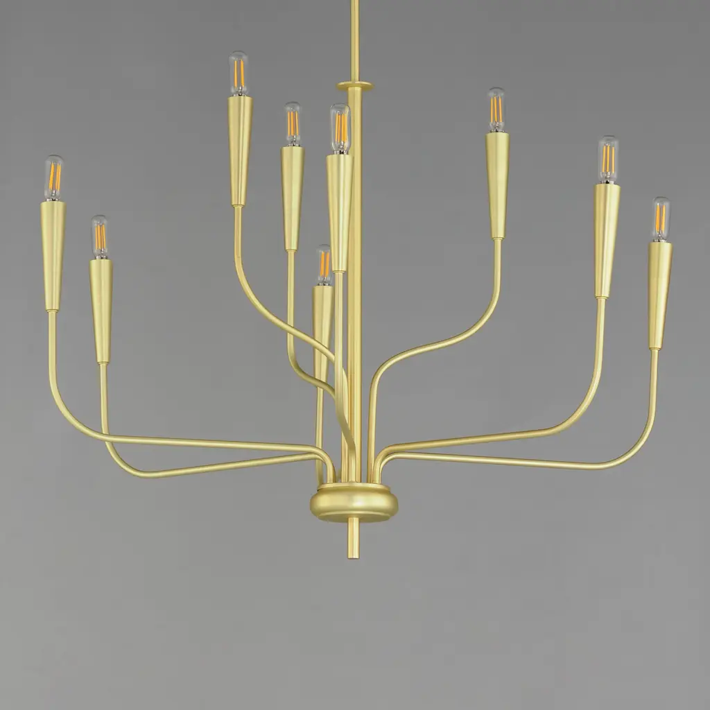 Vela 9 Light 32 Inch Satin Brass Multi-Tier Chandelier Ceiling Light