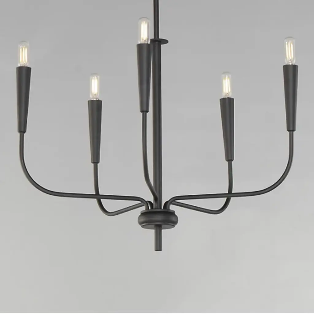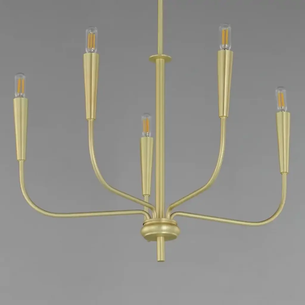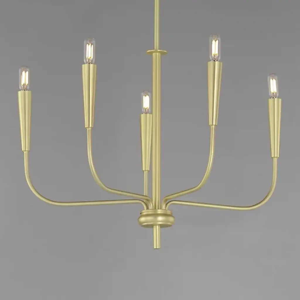 The Vela Chandelier is presented by Maxim Lighting. It’s a simple candle-style chandelier with a modern edge and tall, tapered candle covers that sit at the ends of curved arms. The Vela complements many architectural interiors and allows for creative styling through the selection of lamp type. It provides a convenient new take on the candle chandelier with subtle and unique design details.