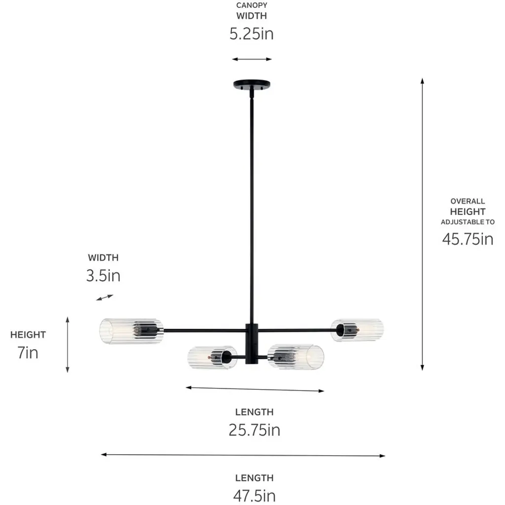 Velestino 4 Light 5.25 Inch Black Chandelier Linear Ceiling Light