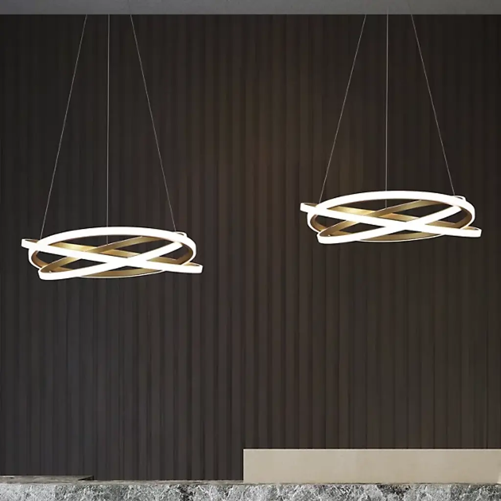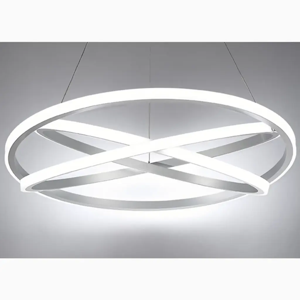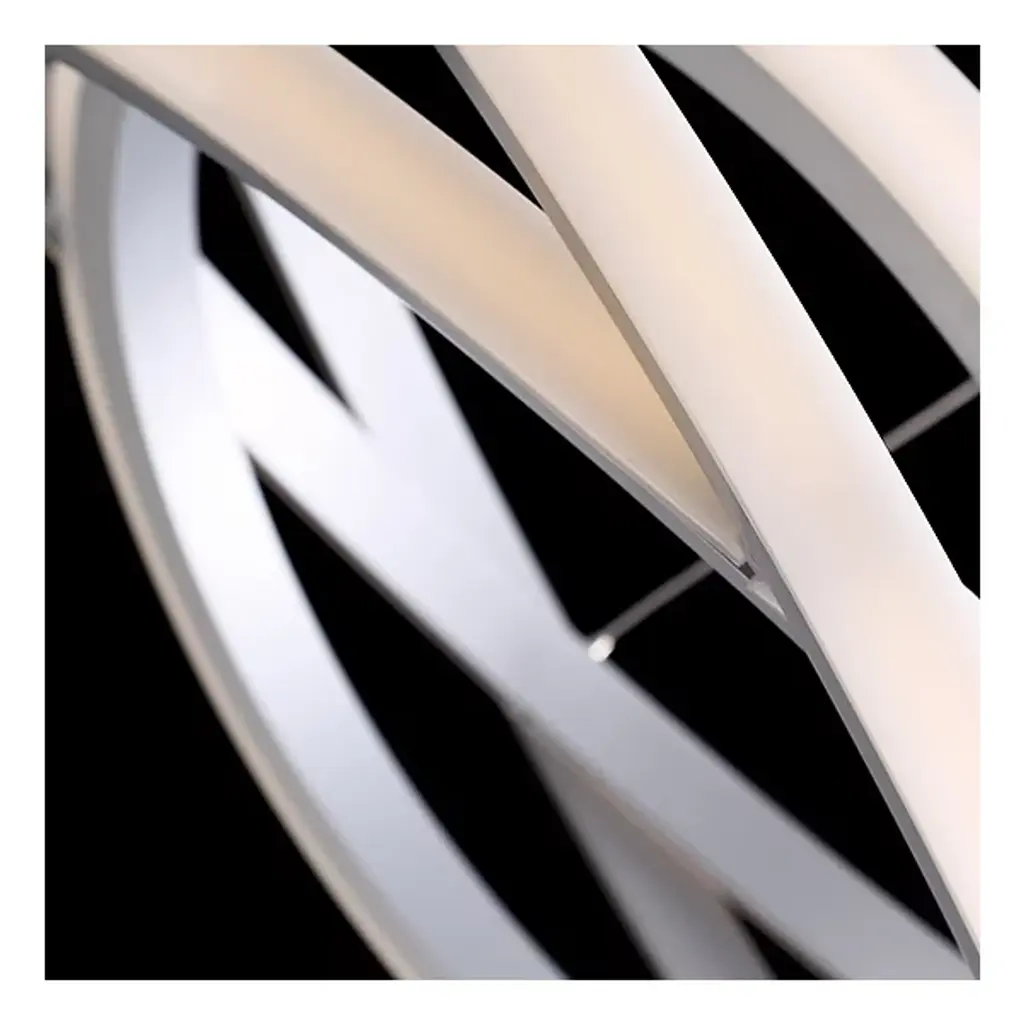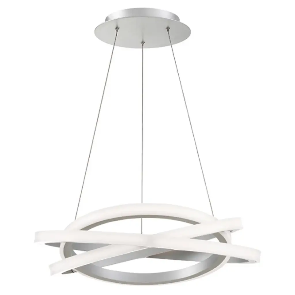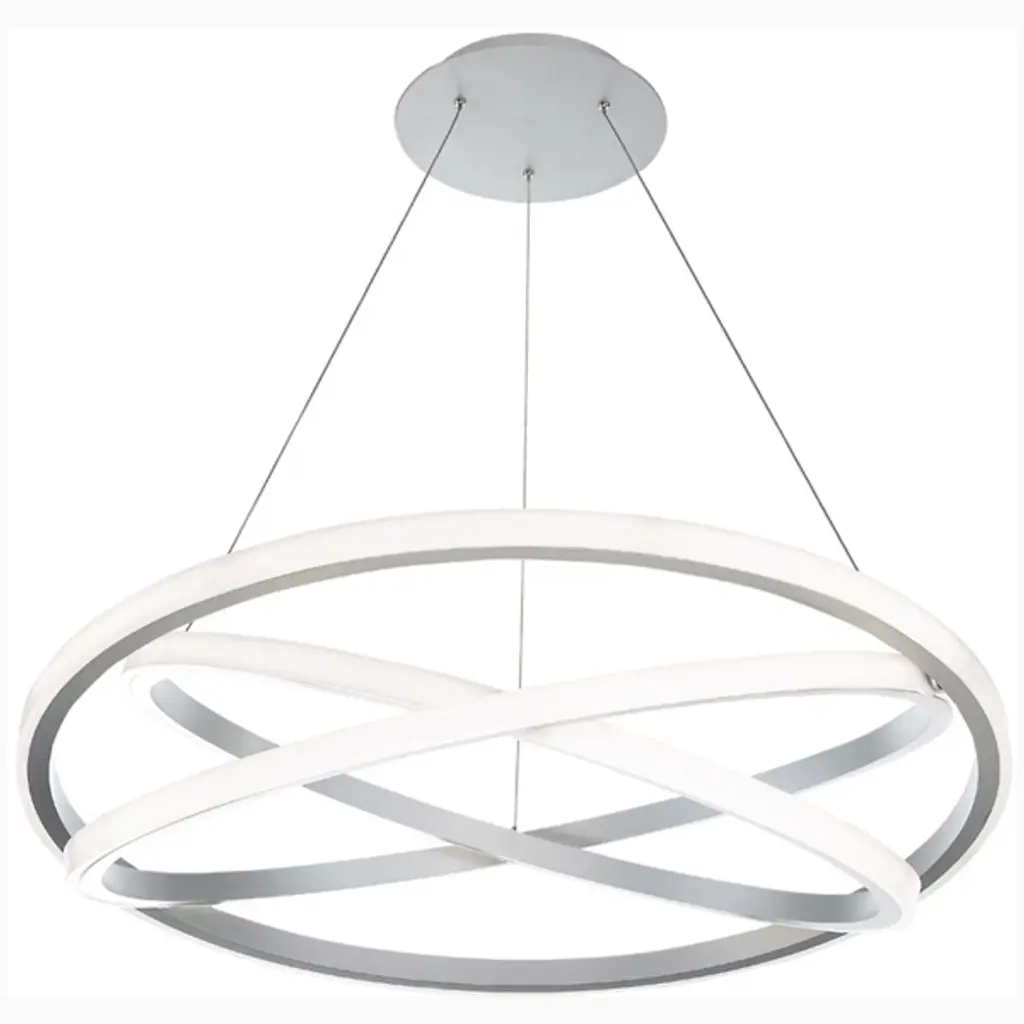 Unique and playful, enhance your modern space with the eye-catching form of the Veloce LED Chandelier from Modern Forms. Three thin wires mount three smooth rings that wrap around each other and rest at various angles, creating a thought-provoking display. The outer end of each ring is lined with integrated, energy-efficient LEDs.The rings can be adjusted to your preference, creating a custom display for the soothing and even layer of illumination that emits from the LEDs.